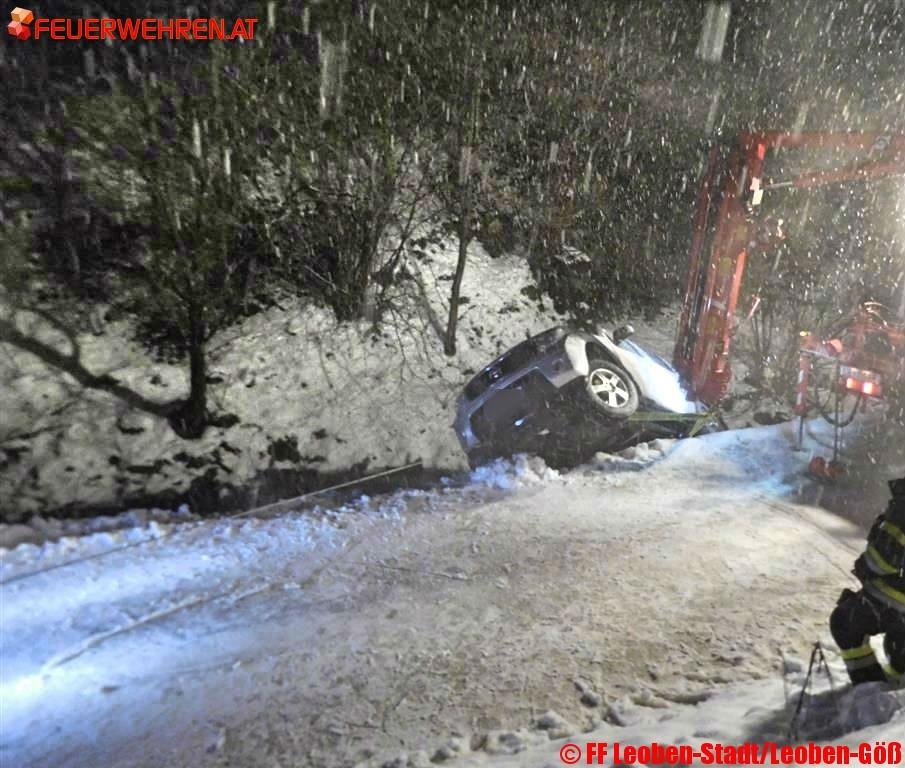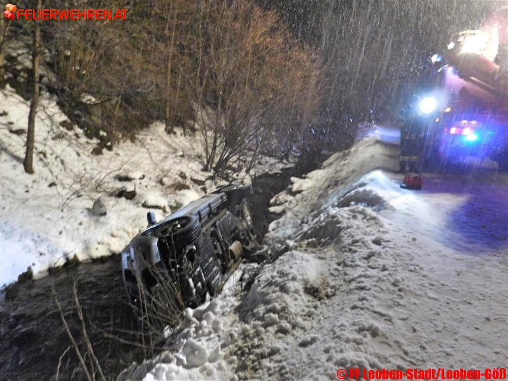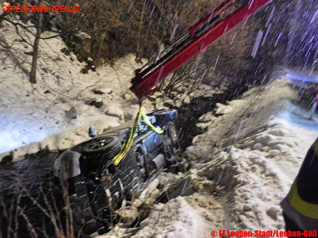 Am 01. Februar 2018 um 17:58 Uhr alarmierte die Bereichsfunkleitzentrale Florian Leoben die Freiwilligen Feuerwehren Leoben-Stadt und Leoben-Göß mit dem Alarmstichwort „T03-VU-Berg.-Öl“ zu einer Fahrzeugbergung in den Groß-Gößgraben.