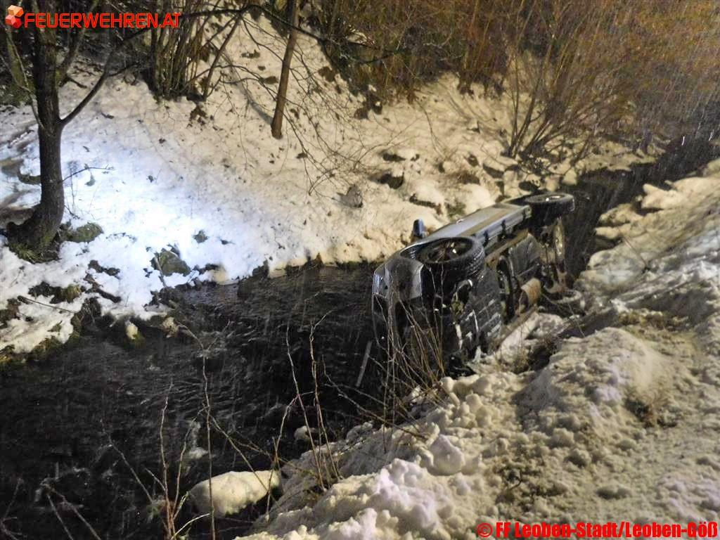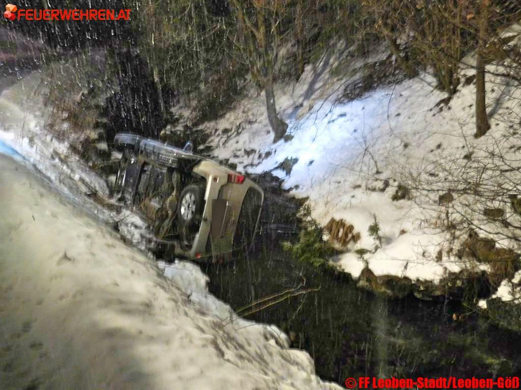 Innerhalb kürzester Zeit rückten die beiden Feuerwehren zu diesem Einsatz aus. Ein Fahrzeug rutschte aus unbekannter Ursache von der Straße und kam auf der Seite im Bach zum Liegen. Von den Einsatzkräften wurde die Einsatzstelle abgesichert und ausgeleuchtet, und das Fahrzeug mittels SRF (schweres Rüstfahrzeug) geborgen. Nach Abschluss aller notwendigen Arbeiten rückten die Feuerwehren um 19:48 Uhr wieder in die Feuerwehrhäuser ein.