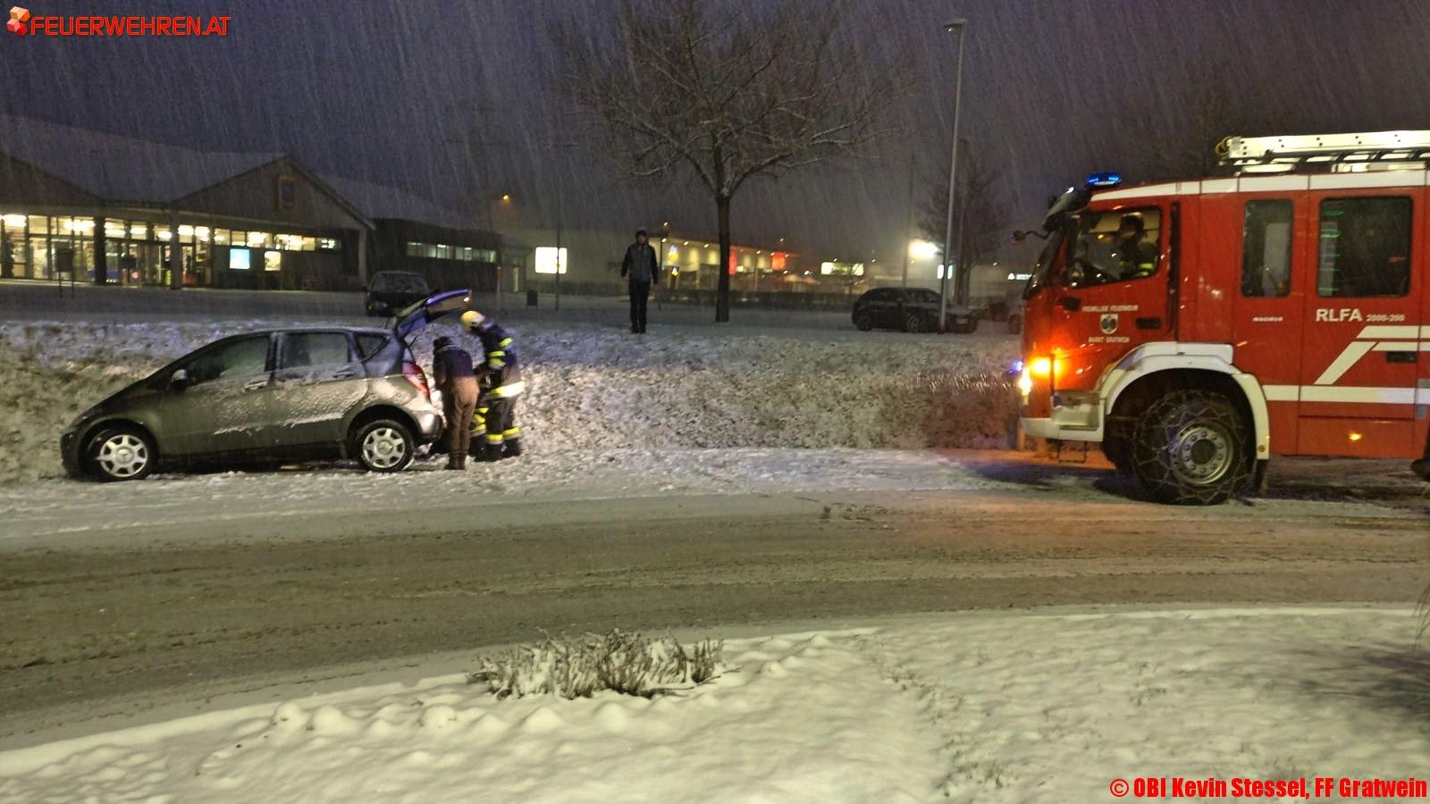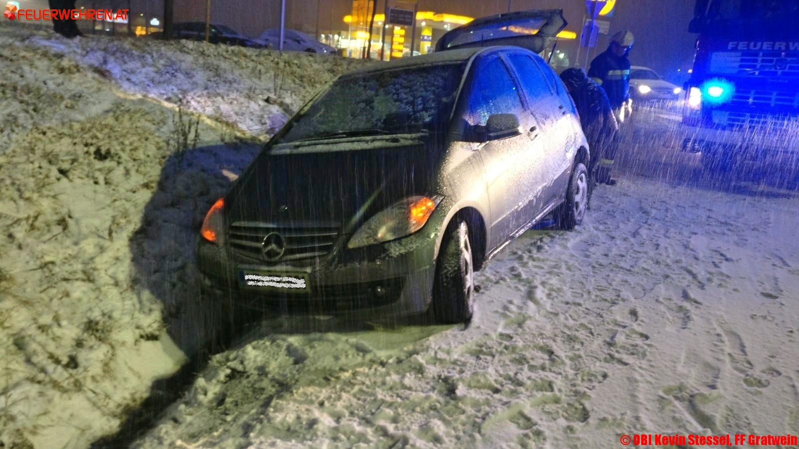 Die Feuerwehr Gratkorn wurde bereits mehrmals alarmiert, um Fahrzeuge, die von der Fahrbahn rutschten, wieder auf die Straße zu bringen.