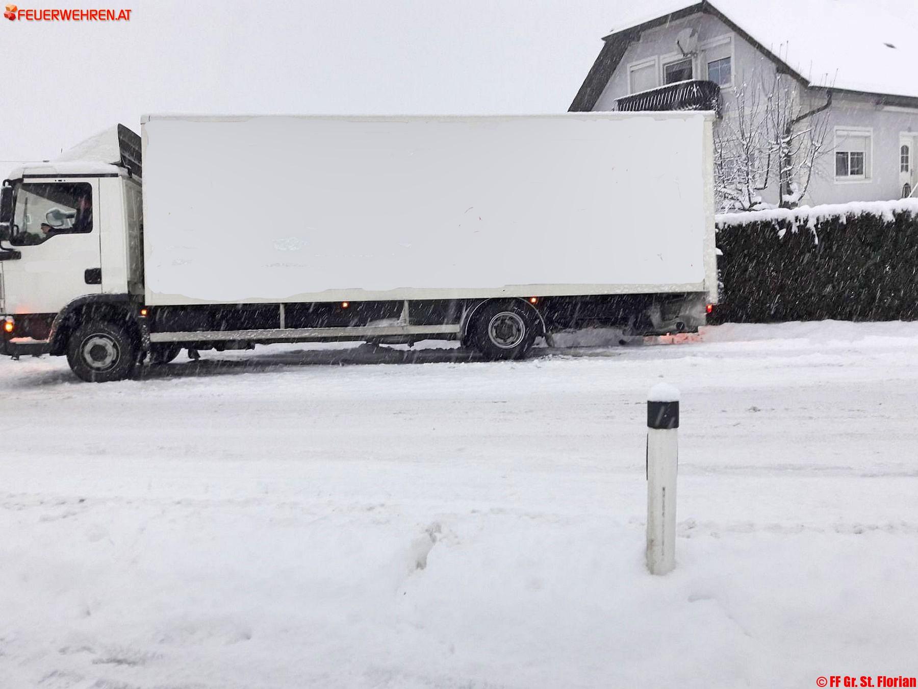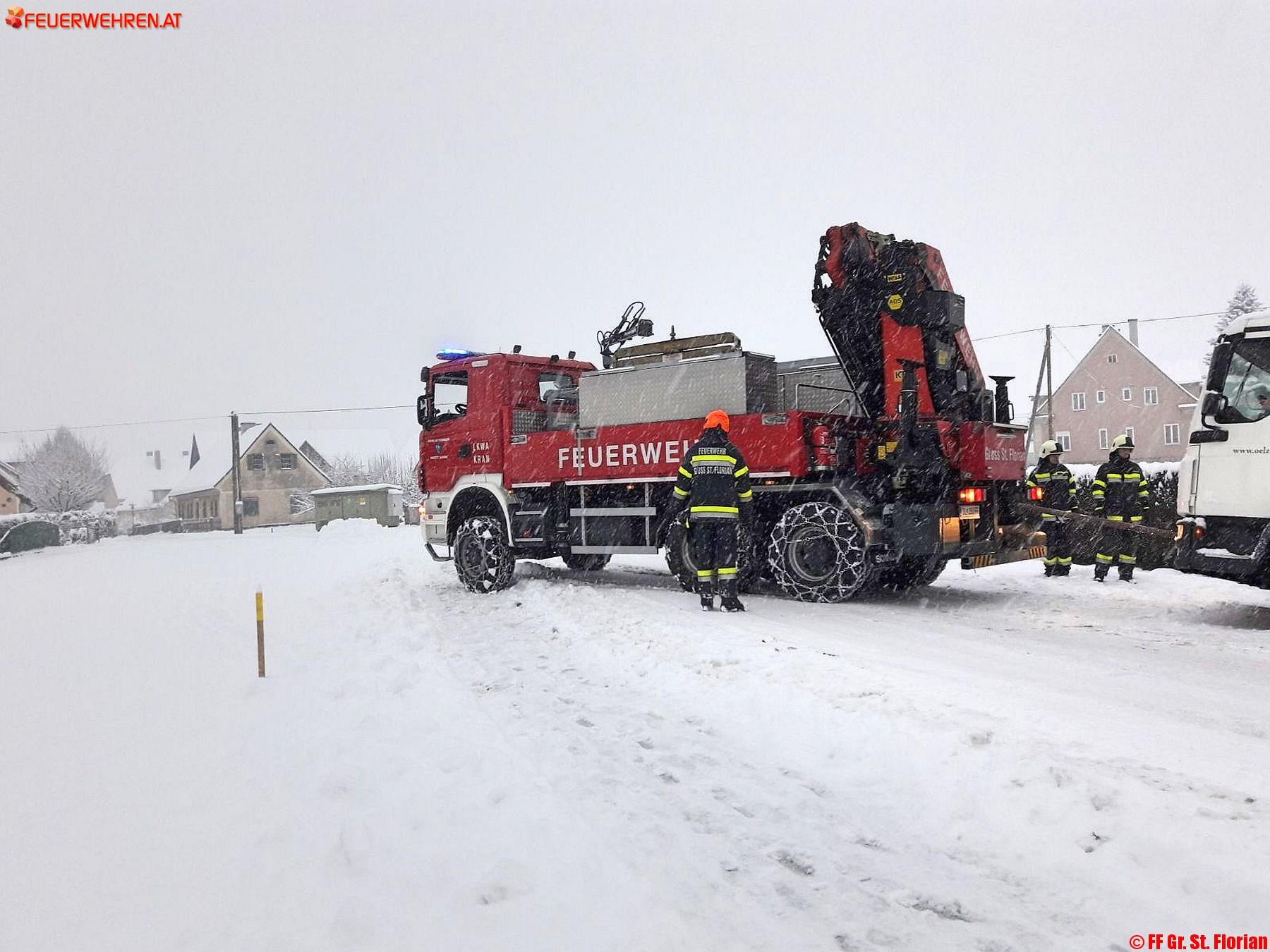 Zu elf Fahrzeugbergungen, wobei es zum Teil, wie etwa im Johngraben, gleich mehrere hängen gebliebene PKW gab und zwei LKW-Bergungen rückten zehn Feuerwehren mit 100 Mann im Laufe des Morgens und Vormittages bis 11.00 Uhr im gesamten Bereichsfeuerwehrverband Deutschlandsberg aus. Glücklicherweise gab es keine schweren Unfälle, bis dato sind von Seiten der Feuerwehr keine Verletzten bekannt.