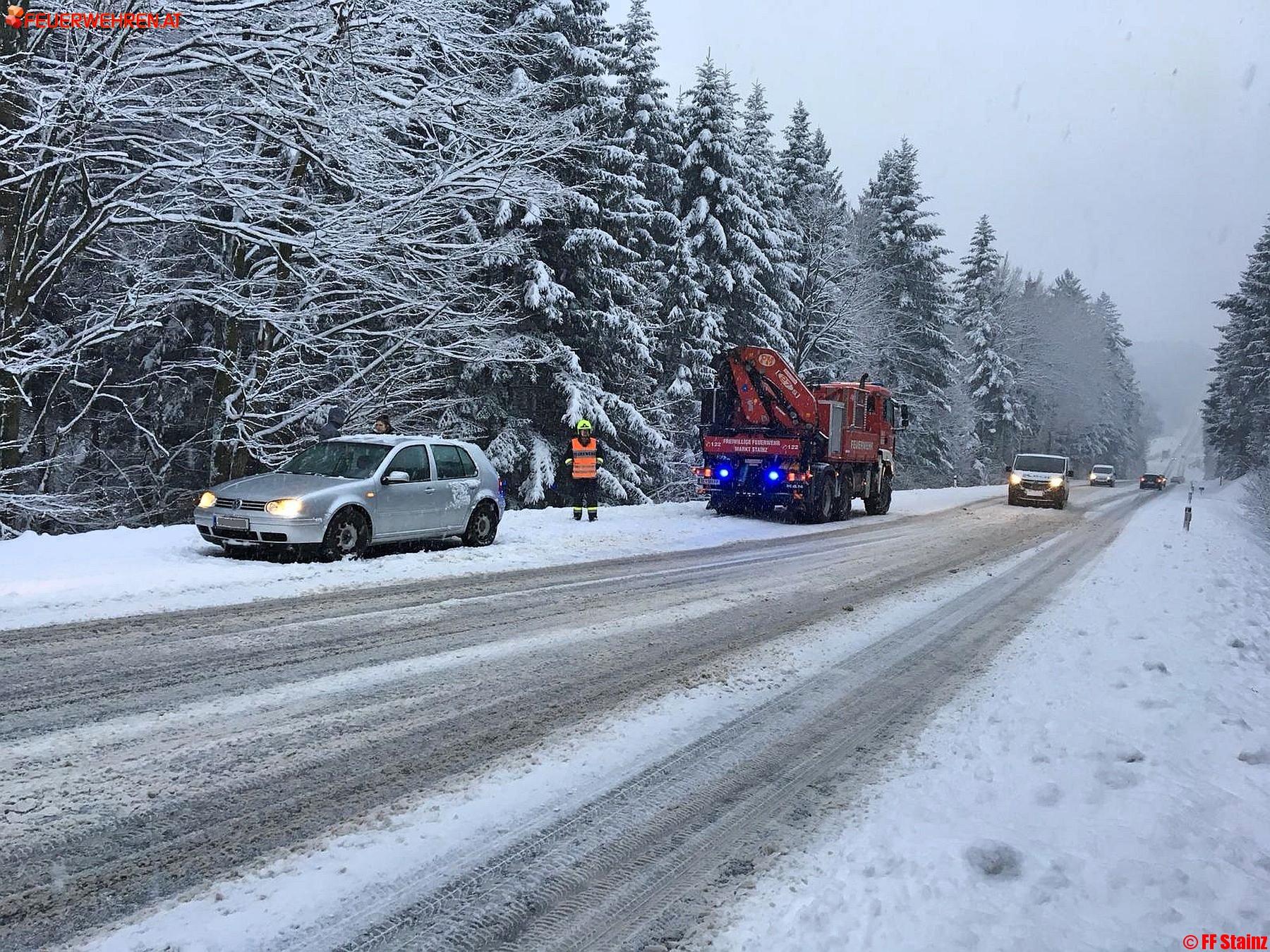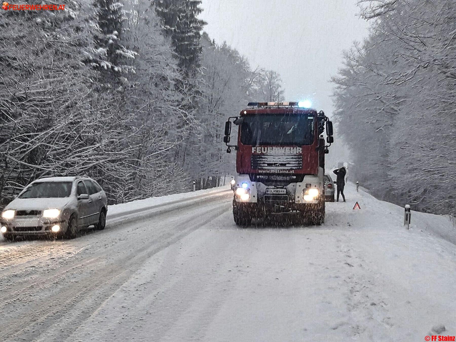 Die angekündigten Neuschneemengen sorgten am 07.02. auch im Bezirk Deutschlandsberg für glatte Straßen. Zahlreiche Fahrzeugbergungen mussten von den Feuerwehren bewältigt werden.