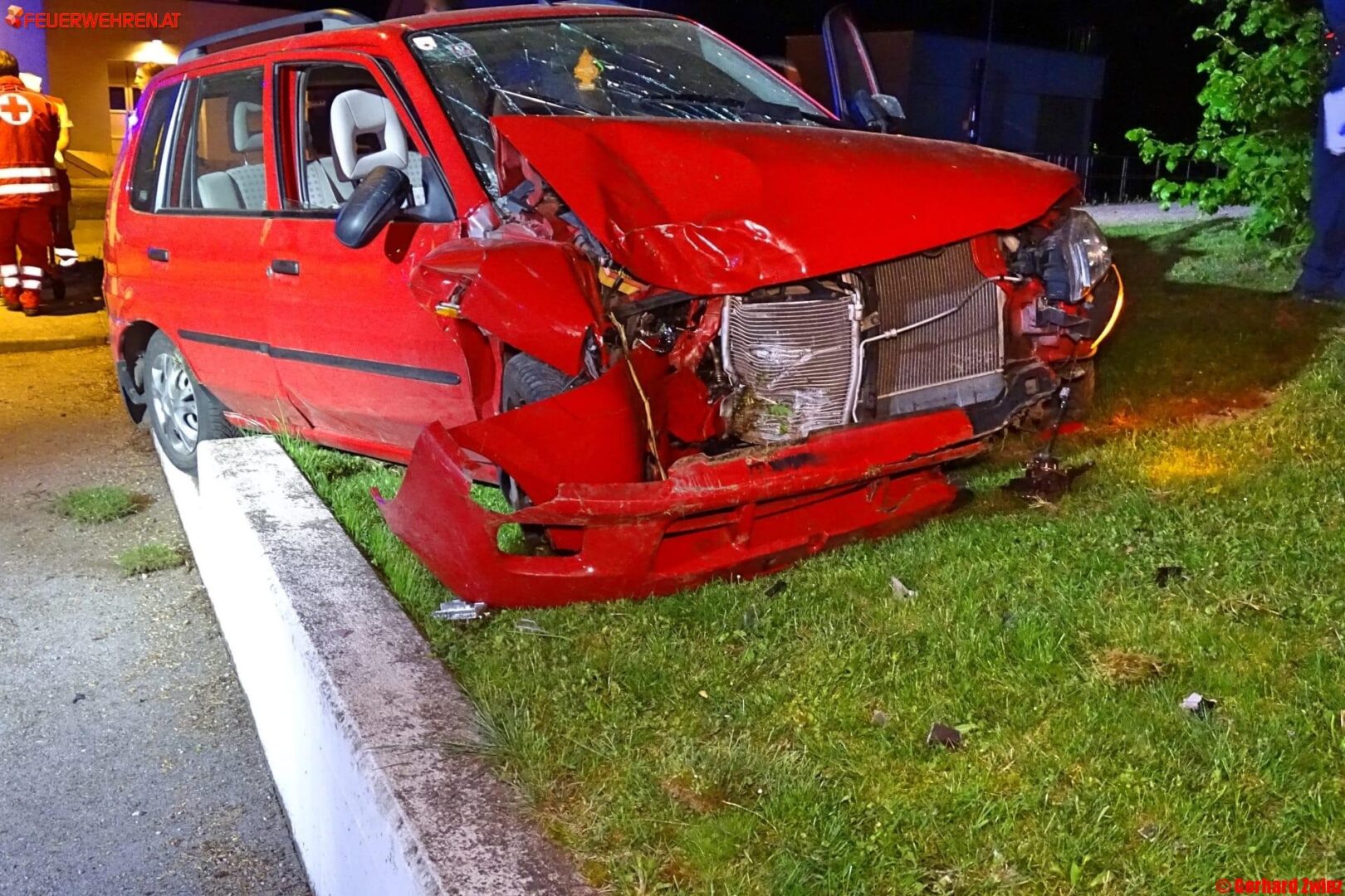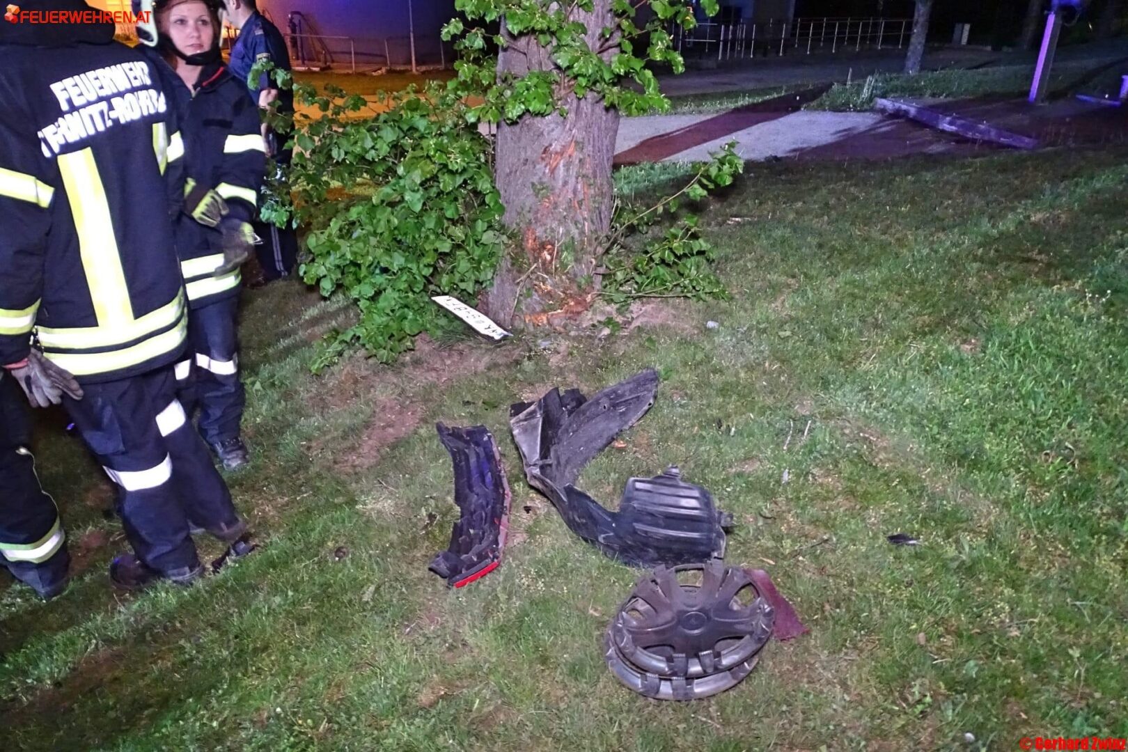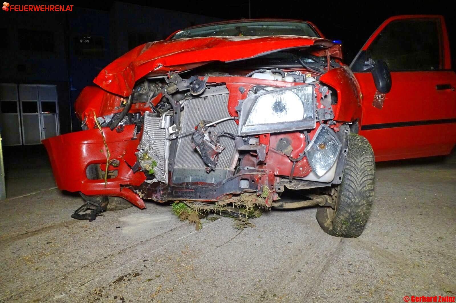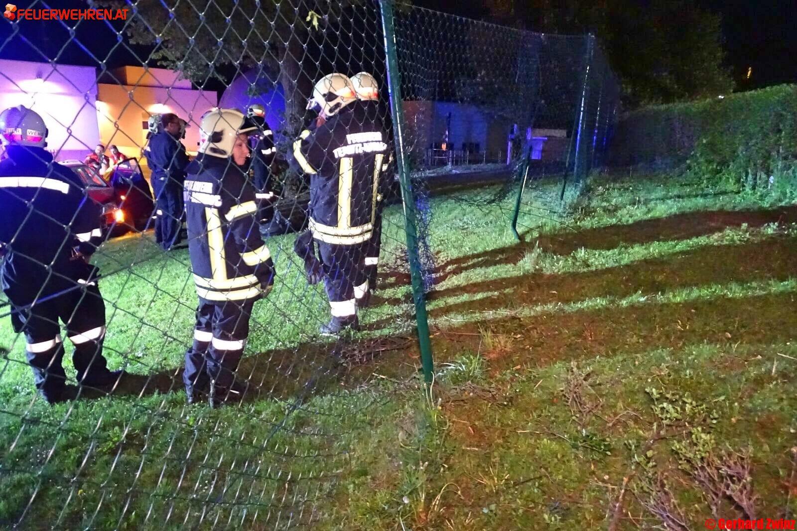 Zu einem schweren Verkehrsunfall mit einer eingeklemmten Person, wurden die Feuerwehren Ternitz-Rohrbach, Ternitz-St.Johann und Ternitz-Mahrersdorf am Donnerstag, den 25.April um 21:09 Uhr gerufen. Auf der Ternitzer Hauptstraße kam eine Lenkerin in einer Rechtskurve mit ihrem Pkw von der Fahrbahn ab, durchstieß ein Gebüsch sowie einen Zaun und prallte am Gelände der Kläranlage gegen einen Baum.