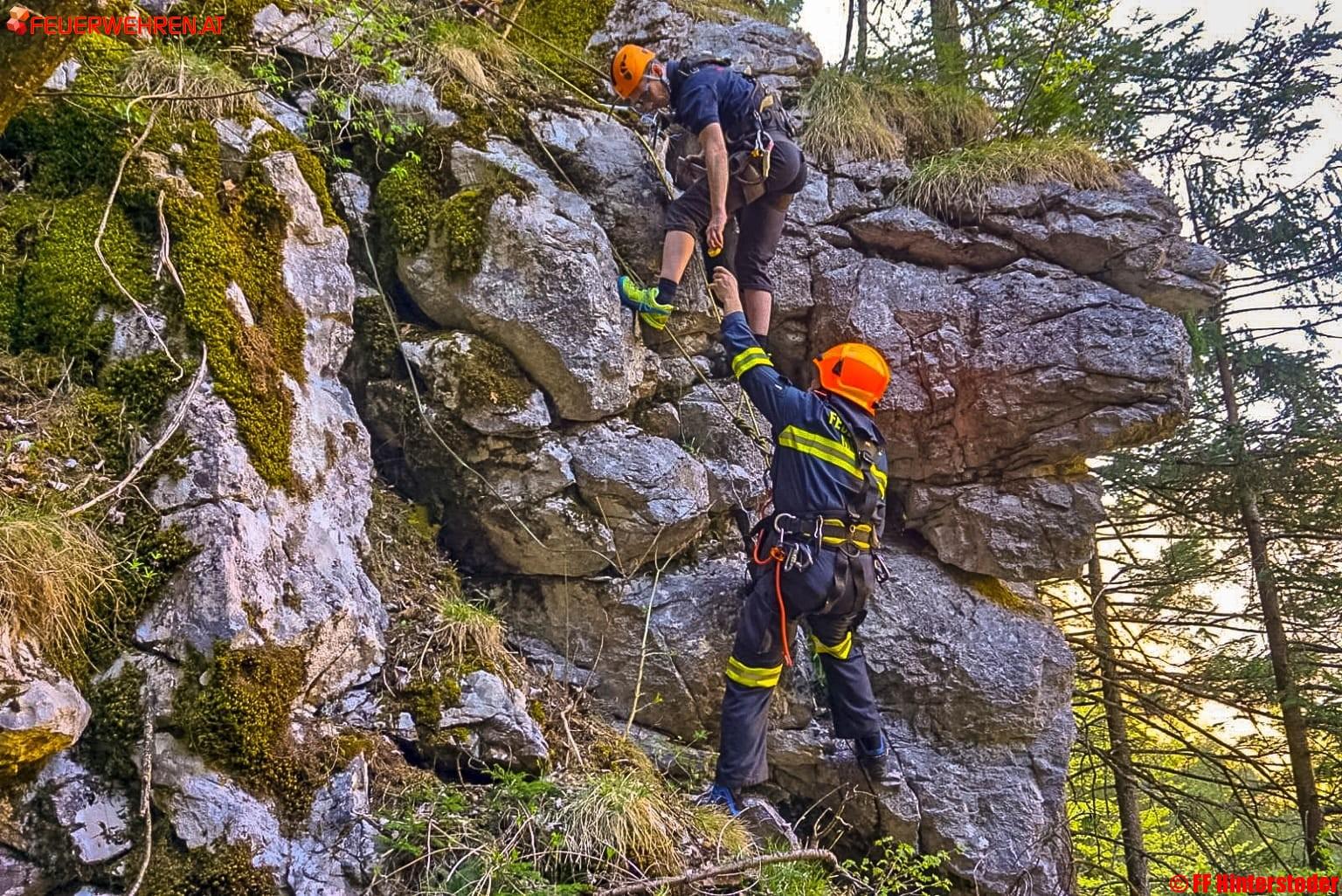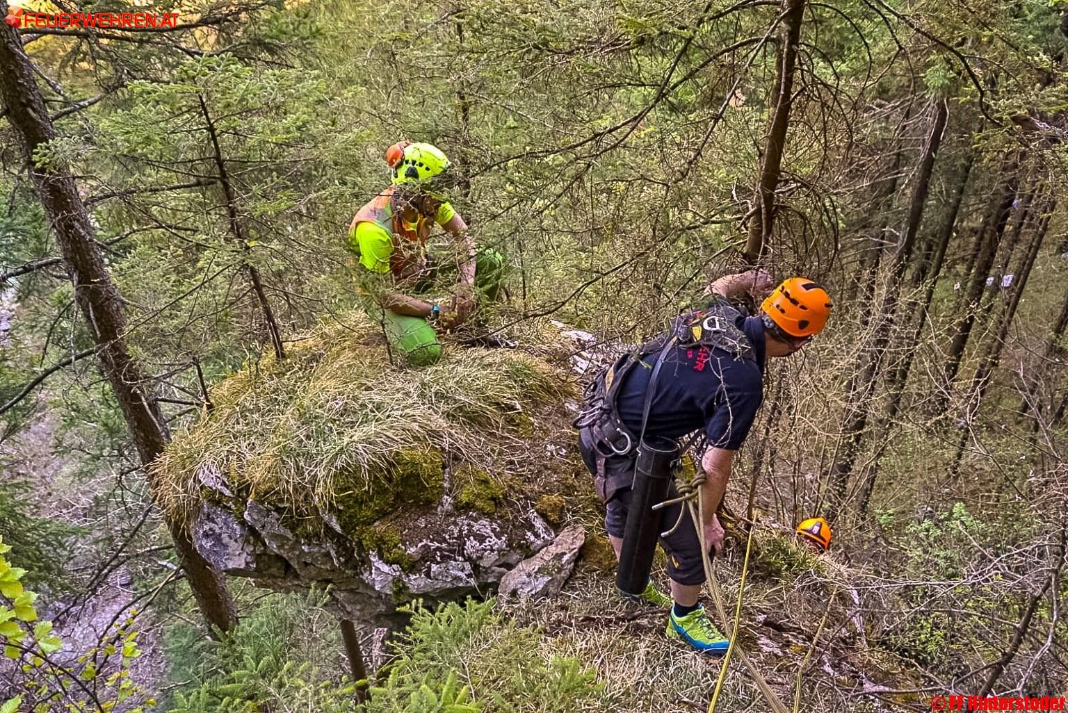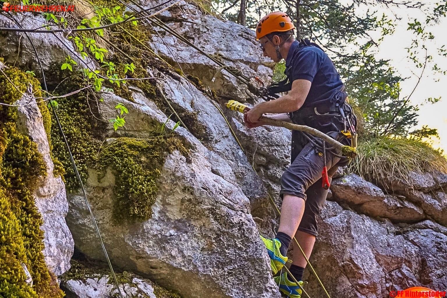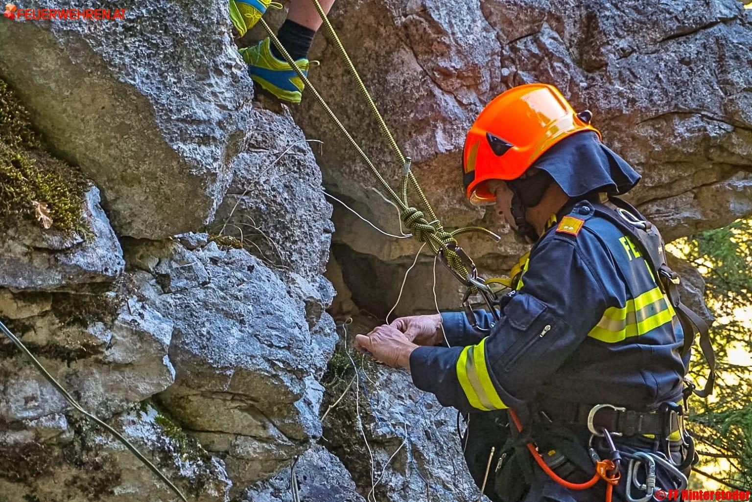 Es wurden daher im Auftrag des Bürgermeisters vom Kommandant der Feuerwehr Hinterstoder die Experten des Sprengstützpunktes Voitsdorf angefordert. Gemeinsam mit weiteren Helfern wurden die Kameraden gesichert zum Felsen hinabgelassen und konnten die Sprengladungen ohne Probleme platzieren. Die Mitglieder der Feuerwehr Hinterstoder übernahmen während dieser Maßnahmen und während der Sprengung die Sicherung des Wanderweges sowie der Stodertal Landesstraße auf der gegenüberliegenden Seite.