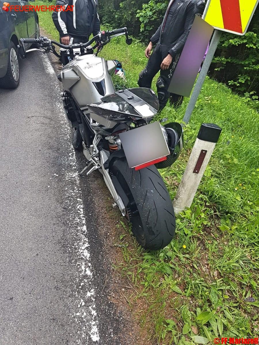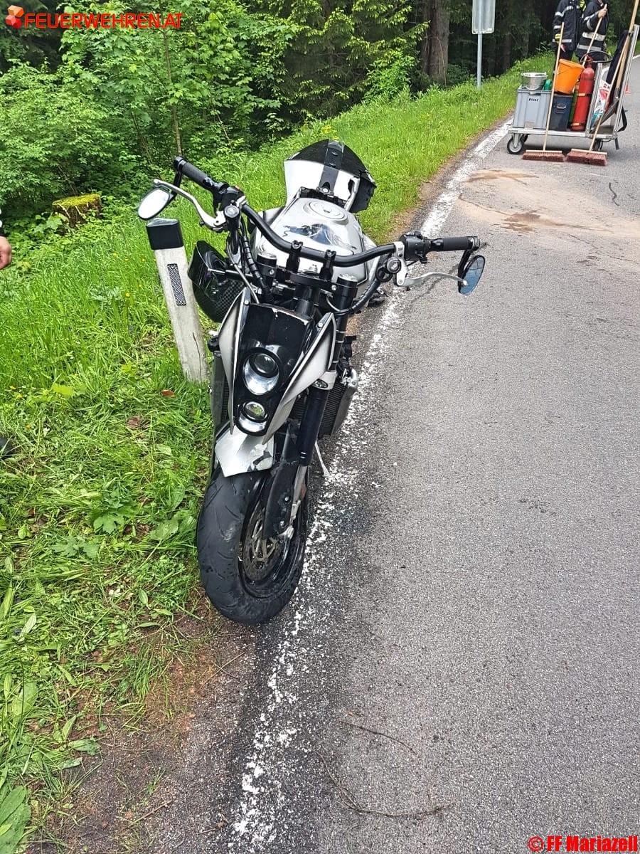 Am 21. Mai 2018 wurden die FF-Mariazell und die FF-Gußwerk kurz vor Mittag zu einem Verkehrsunfall auf die B24-Hochschwab Straße alarmiert. Aus unbekannter Ursache ist der Lenker eines Motorrads mit einem PKW kollidiert. Es wurden keine Personen verletzt.
