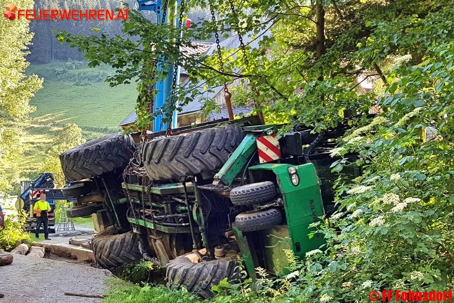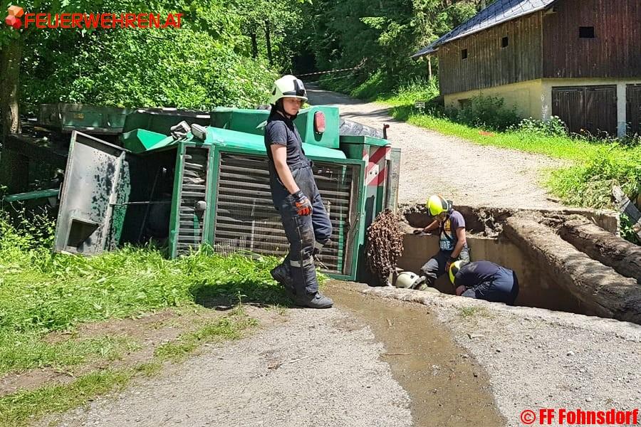 Durch das schnelle Eingreifen der Feuerwehren aus Fohnsdorf und Judenburg konnte ein Umweltschaden im Steinmetzgraben in der Gemeinde Fohnsdorf verhindert werden. Eine mit 1000l Dieselkraftstoff beladene Forstarbeitsmaschine verunfallte am späten Vormittag des 19. Juni, ein stundenlanger und aufwendiger Einsatz der Feuerwehr war die Folge.