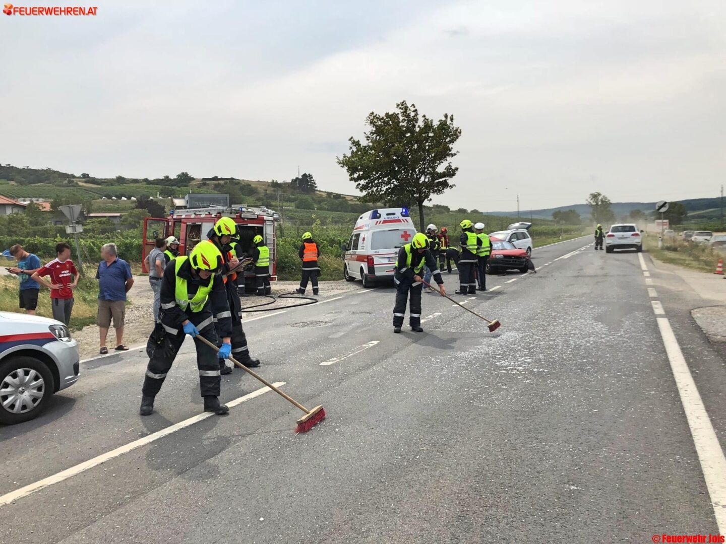 Nachdem die Polizei die Fahrzeuge freigeben hatte wurde die Fahrbahn von den 28 Mitgliedern der FF Jois, welche mit drei Fahrzeugen im Einsatz standen, gereinigt und die fahruntüchtigen Fahrzeuge gesichert abgestellt.