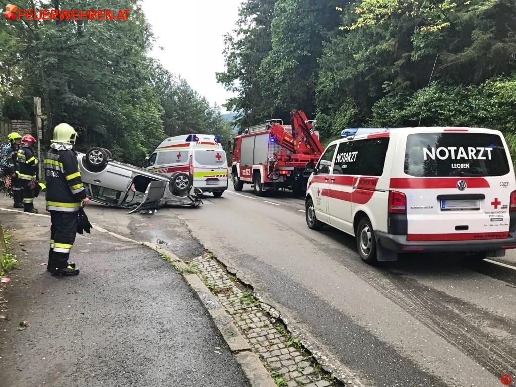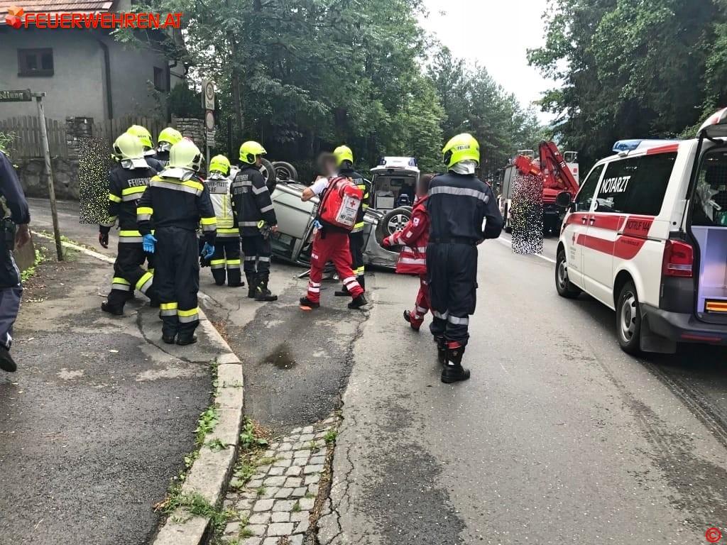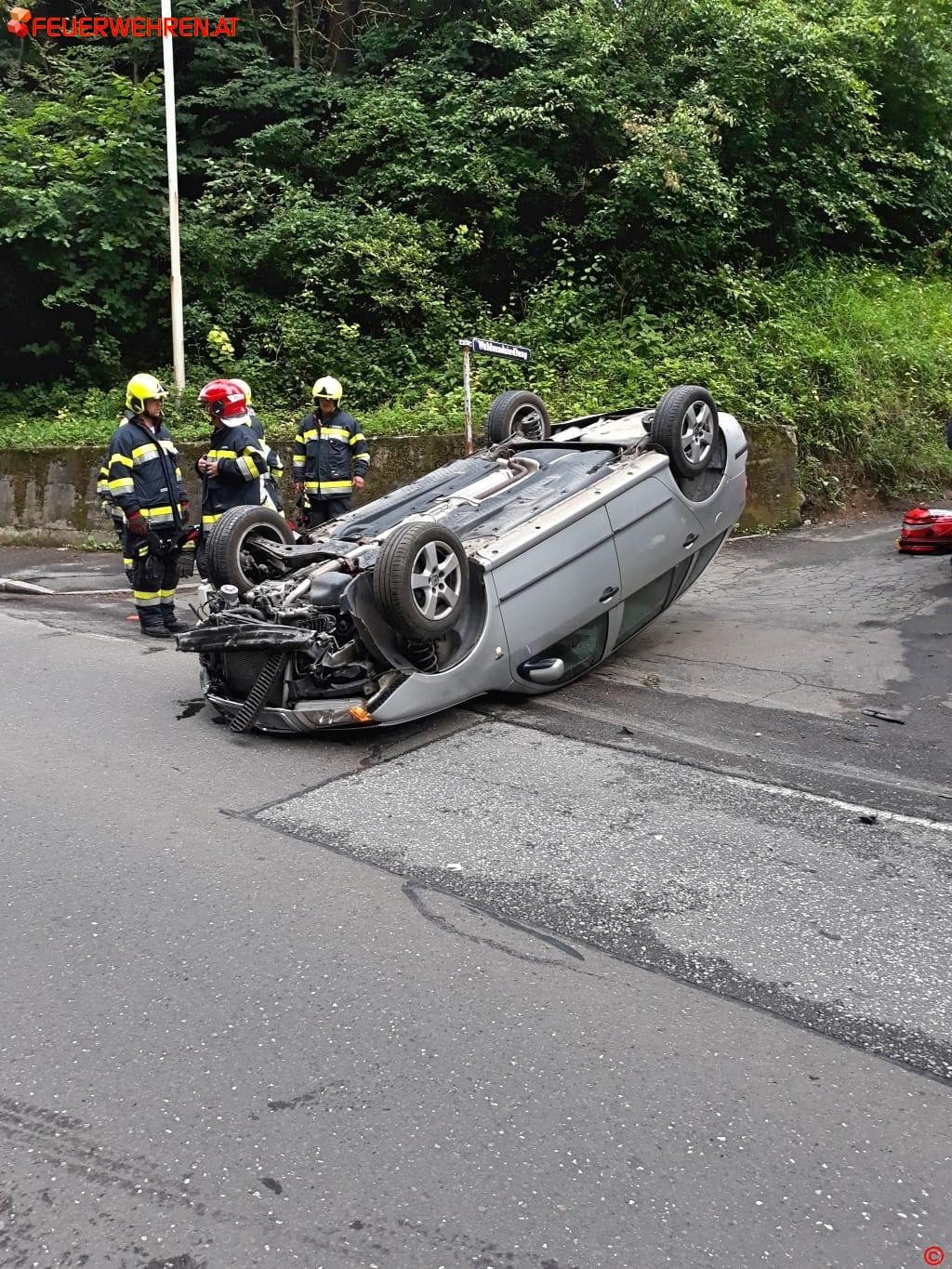 Dieser Einsatz war noch nicht zu Ende, als den eingesetzten Feuerwehrkräften bereits der nächste Alarm „Verkehrsunfall am Häuselberg“ übermittelt wurde. Ein Fahrzeug hatte sich am Häuselberg aus unbekannter Ursache überschlagen und blieb am Dach liegen, wobei sich die Person beim Eintreffen der Einsatzkräfte bereits außerhalb des PKW´s befand. Die Unfallstelle wurde abgesichert, die verletzte Person wurde vom ÖRK betreut und anschließend ins Krankenhaus eingeliefert.