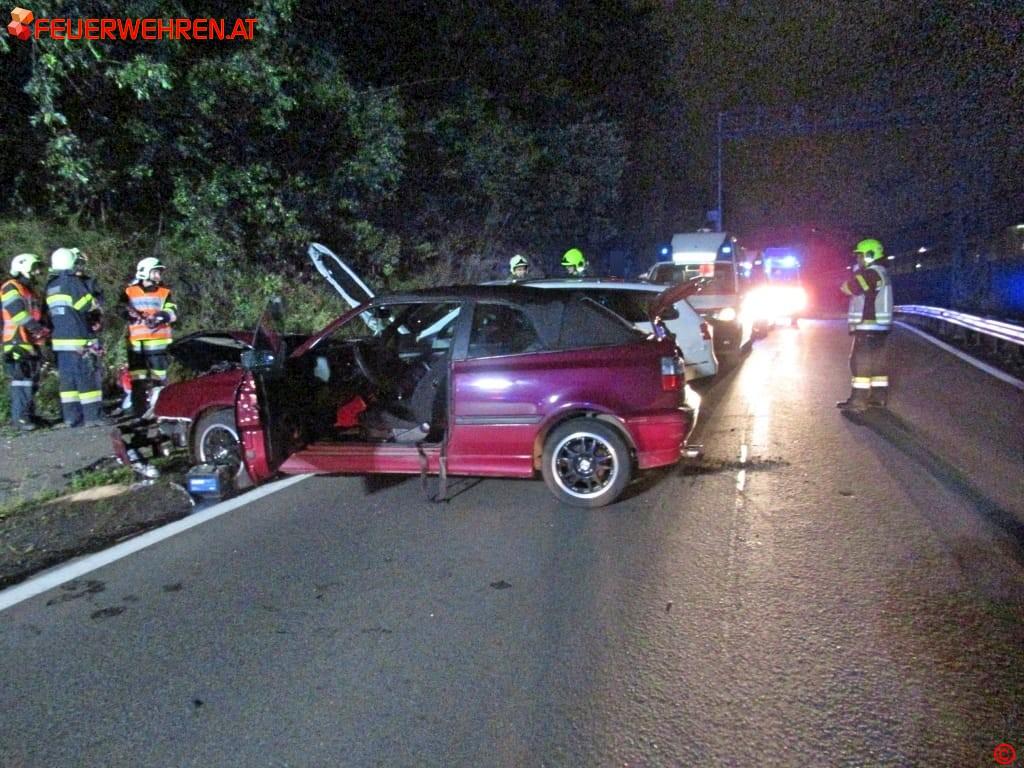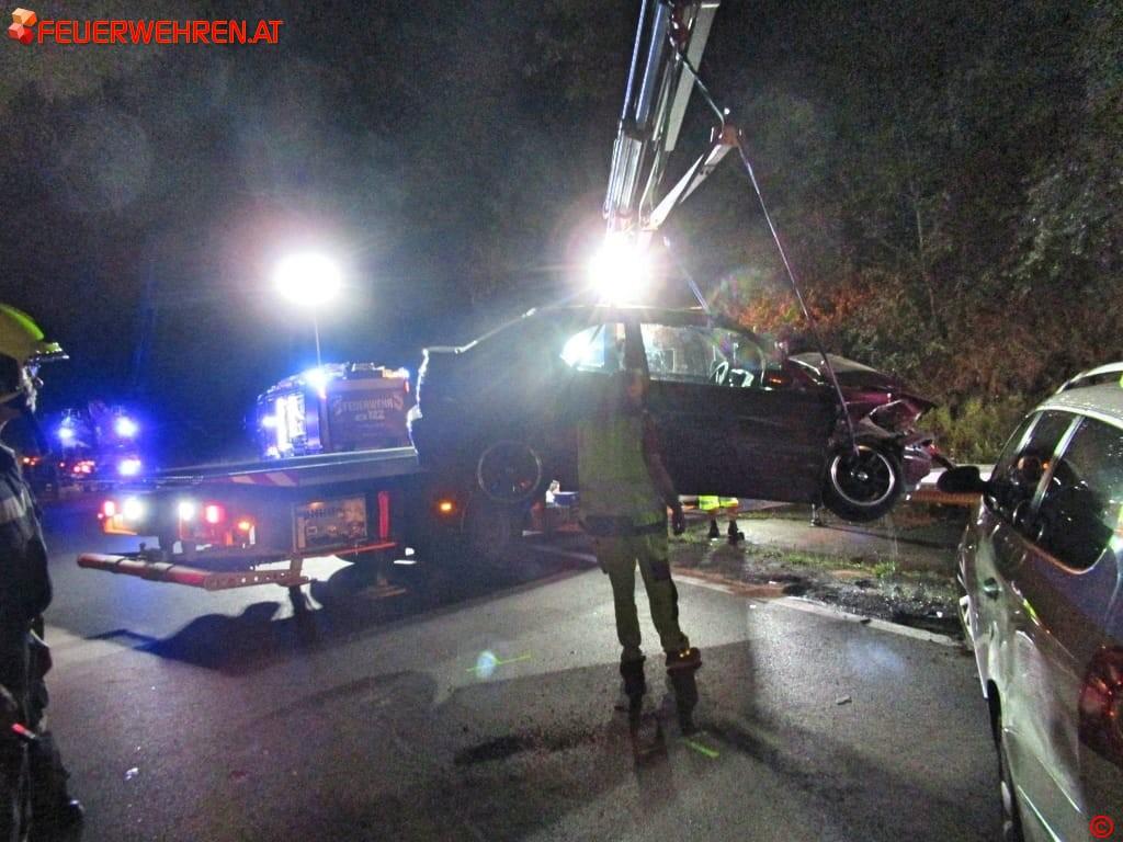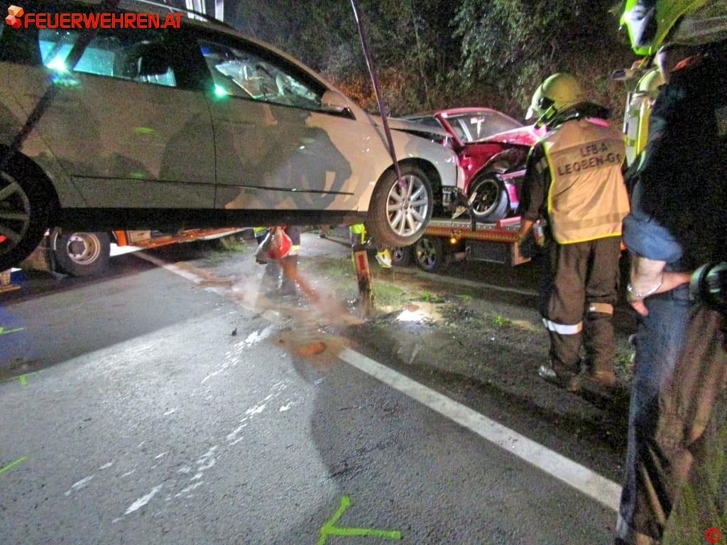 Die ersteingetroffen Einsatzkräfte setzten die Meldung ab, dass die verletzten Personen bereits aus den Fahrzeugen befreit waren und vom Roten Kreuz versorgt wurden. Die Unfallstelle wurde abgesichert, ausgeleuchtet, und die ausgeflossenen Betriebsmittel vorläufig gebunden. Die Verletzten wurden durch das Rote Kreuz in das LKH Hochsteiermark eingeliefert.