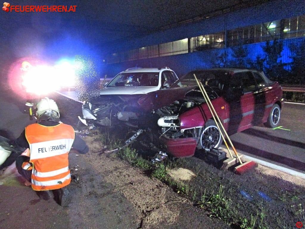 Am 28.07.2018 um 02:45 Uhr alarmierte die Landesleitzentrale Florian Steiermark die Freiwillige Feuerwehr Leoben-Stadt und die Freiwillige Feuerwehr Leoben-Göß mit dem Alarmstichwort „T03-VU-Berg.-Öl“ zu einem Verkehrsunfall mit zwei Fahrzeugen auf der B115a Höhe ehemalige Kühltürme. Aus unbekannter Ursache kollidierten zwei PKW.