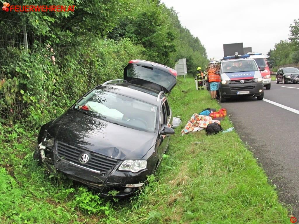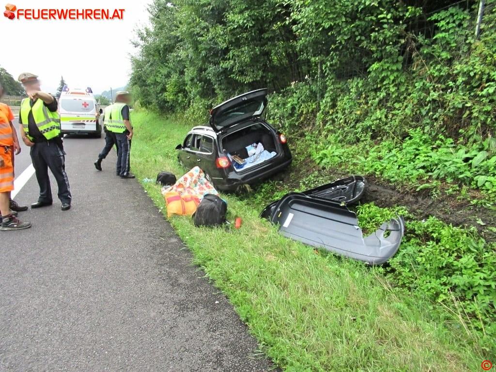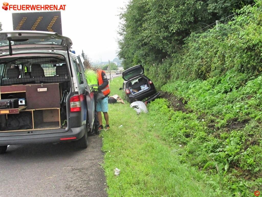 Um 09:02 wurden die beiden Feuerwehren durch die Bezirksleitstelle Florian Leoben zu einem weiteren Unfall auf der S6 Fahrtrichtung Bruck nach dem Massenbergtunnel alarmiert. Hier kam aus unbekannter Ursache ein Fahrzeug von der Fahrbahn ab und kam im Straßengraben zu stehen.