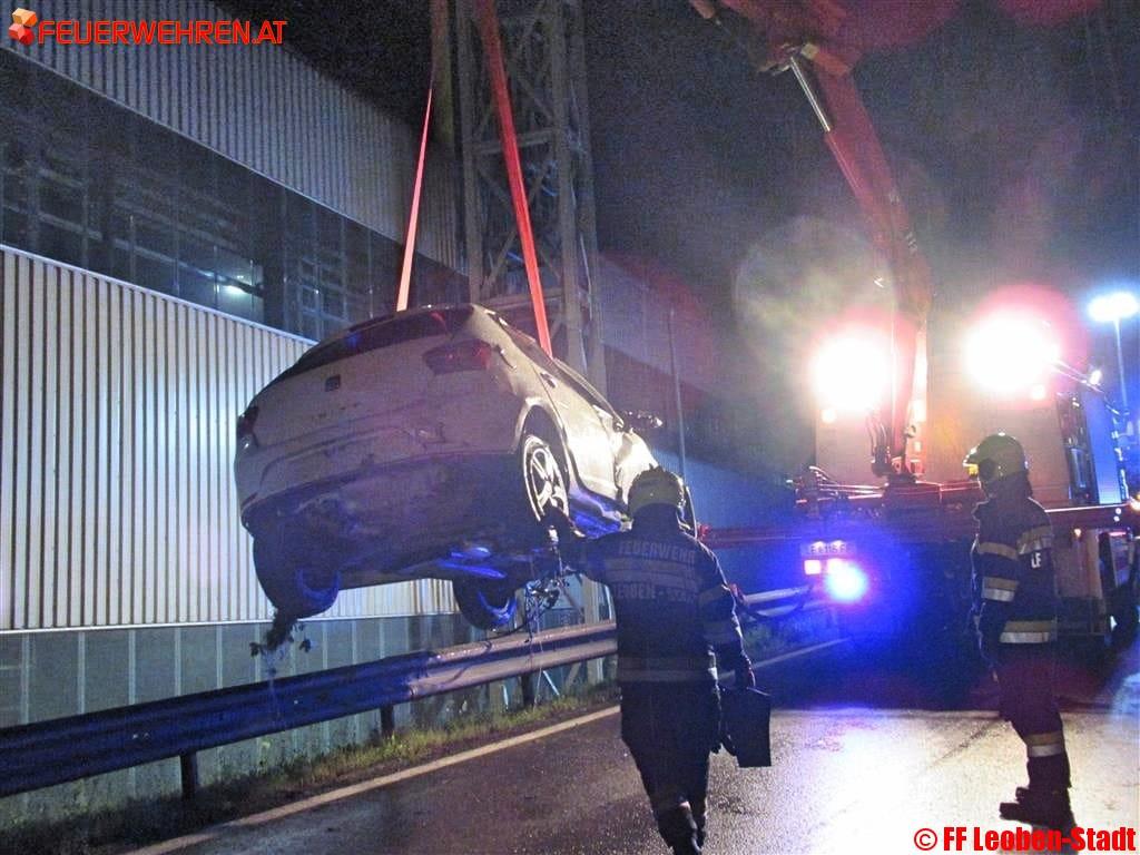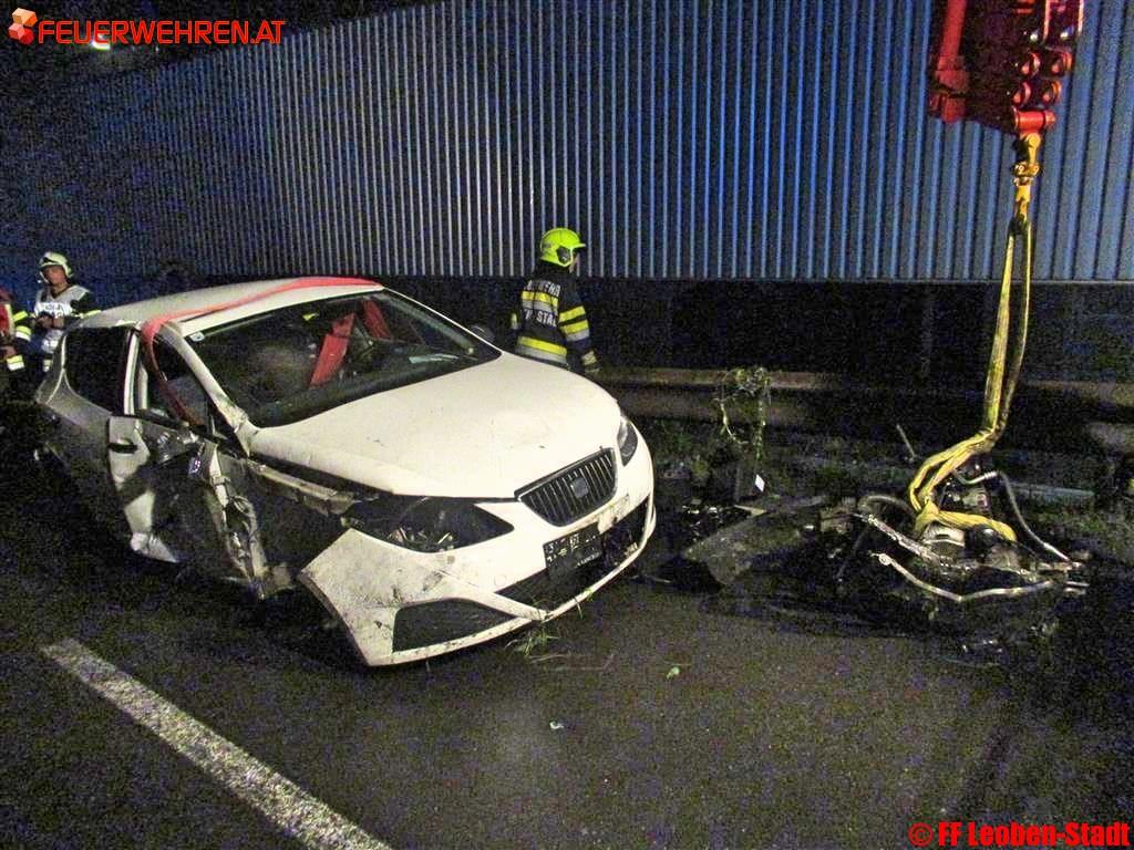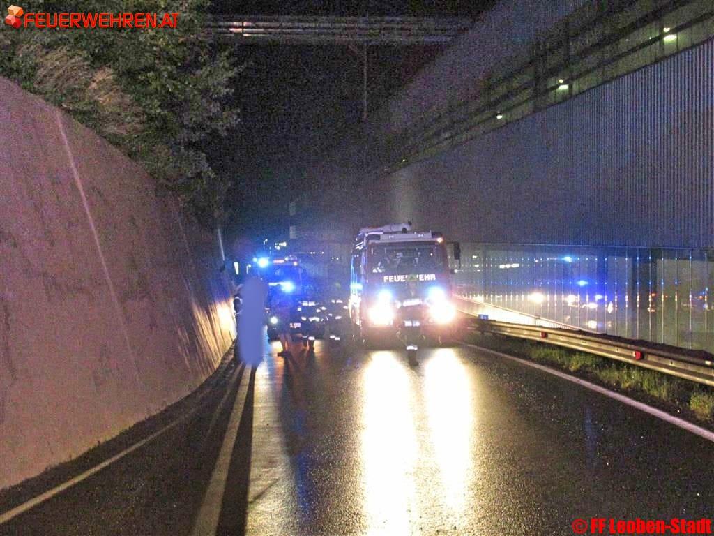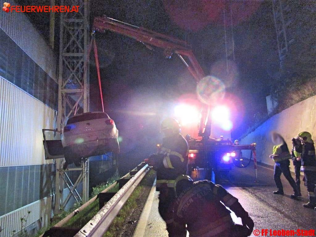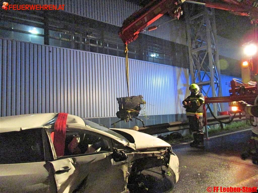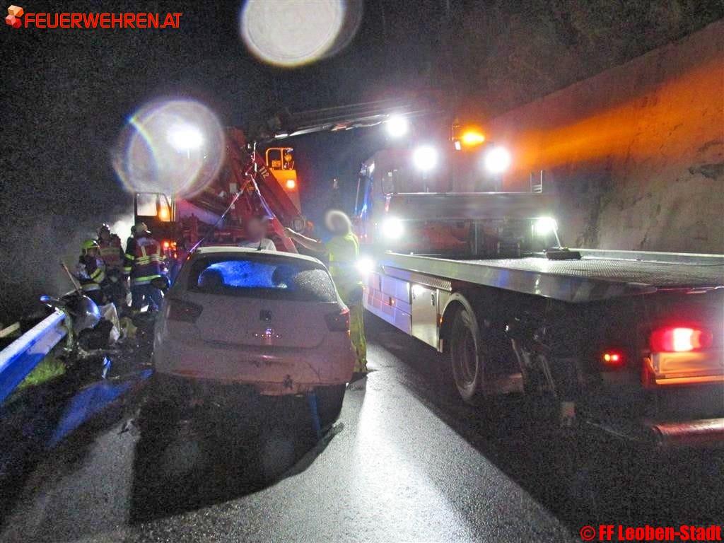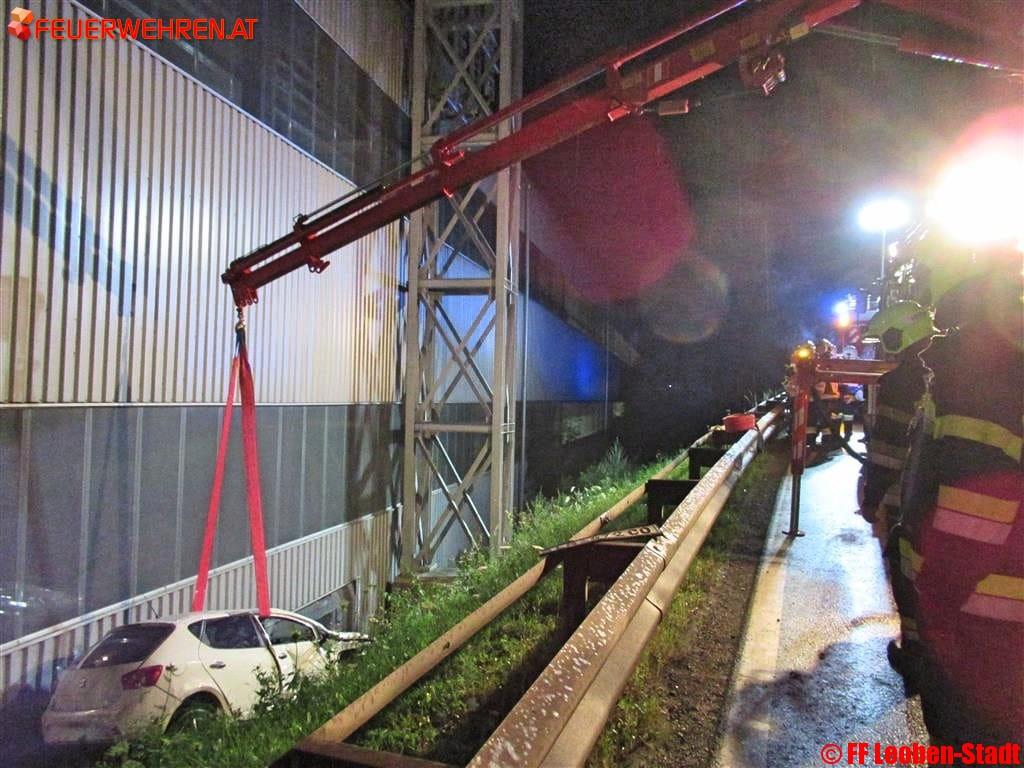 Am 22.07.2018 um 21:48 Uhr alarmierte die Landesleitzentrale Florian Steiermark die Freiwillige Feuerwehr Leoben-Stadt und die Freiwillige Feuerwehr Leoben-Göß mit dem Alarmstichwort „T10-VU-eingekl.“ zu einem Verkehrsunfall mit eingeklemmter Person auf der B115a Höhe ehemalige Kühltürme. Aus unbekannter Ursache kam ein Fahrzeug von der Straße ab, beschädigte eine Halle der VOESTALPINE und kam in der Folge im Straßengraben zu stehen.
