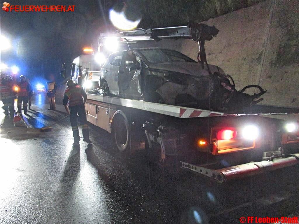 Dabei wurde der Motorblock aus dem Fahrzeug gerissen. Die ersteingetroffenen Einsatzkräfte konnten rasch die Meldung absetzen, dass die Person bereits aus dem Fahrzeug befreit war. Diese wurde in Folge durch das Rote Kreuz zur Kontrolle in das LKH Hochsteiermark eingeliefert.