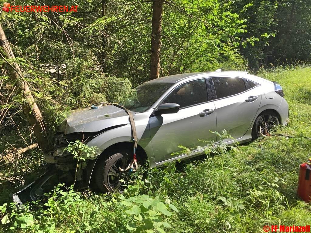 Am Samstag, den 4. August wurde die ortszuständige Feuerwehr Gußwerk zusammen mit der Feuerwehr Mariazell zu einer Fahrzeugbergung auf die Hochschwab Straße (B24) alarmiert. Aus unbekannter Ursache verlor der Lenker eines Pkws in einer Kurve die Kontrolle über sein Fahrzeug und kollidierte mit einen Baum.