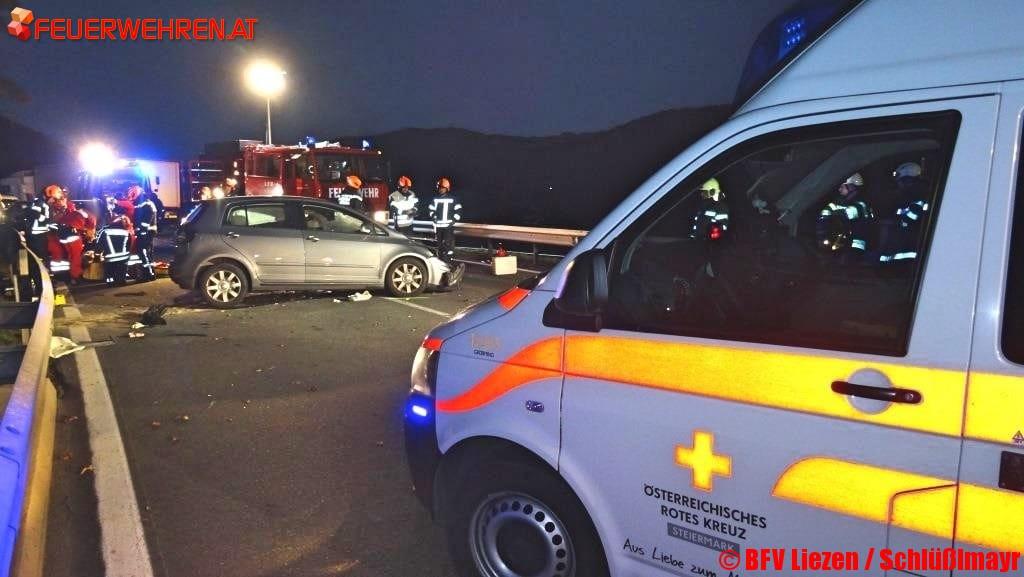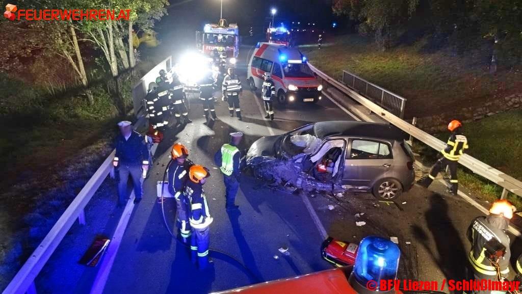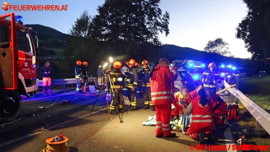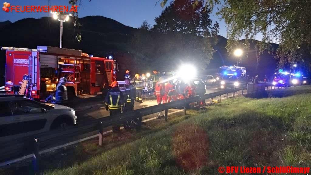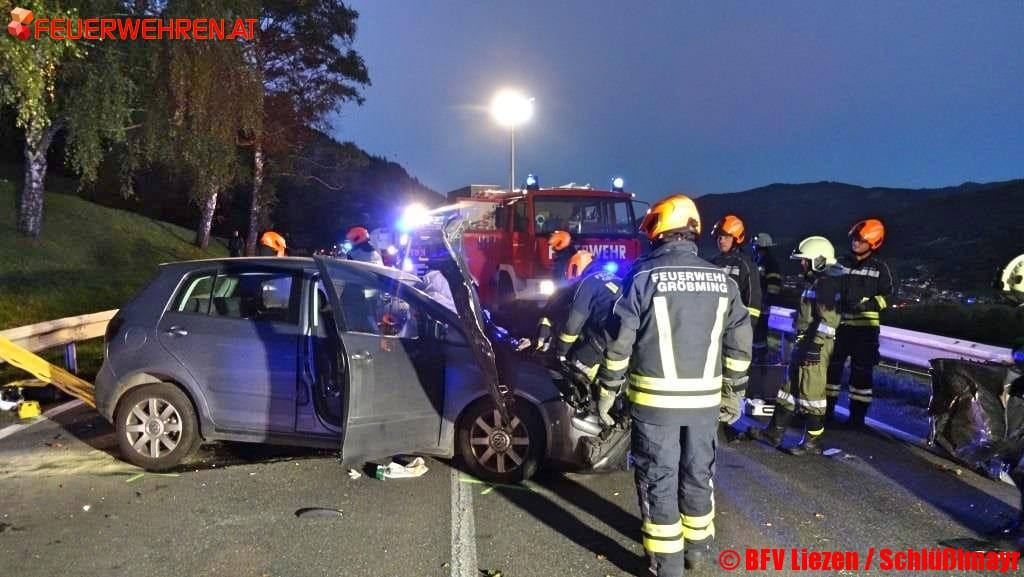 Am Abend des 27. September kurz vor 19 Uhr ereignete sich auf der B320 zwischen Pruggern und Gröbming am sogenannten Simeterbühel ein schwerer Verkehrsunfall. Ein PKW kollidierte dabei frontal mit einem entgegenkommenden Sattelschlepper. Die diensthabenden Disponenten am „Florian Steiermark“ alarmierten umgehend die Feuerwehren Pruggern, Gröbming und Stein an der Enns.