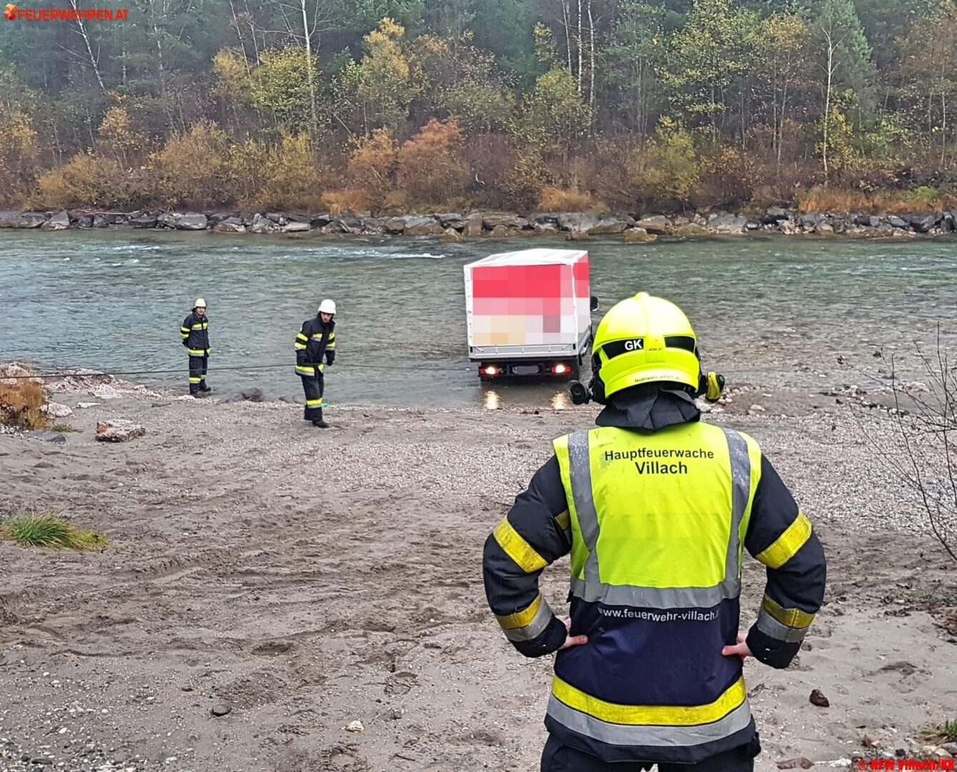 Kurz nach 8 Uhr morgens wurde die Feuerwehr von der Polizei zu einer KFZ Bergung aus dem Gailfluss angefordert. Der ersten Meldung zu Folge stand ein Möbelwagen im Fluss, Lenker oder Beifahrer waren nicht mehr vor Ort. Seitens der Einsatzzentrale wurde Alarmstufe 2 und somit die Hauptfeuerwache Villach, die FF Judendorf und die örtlich zuständige Feuerwehr Turdanitsch-Tschinowitsch alarmiert.