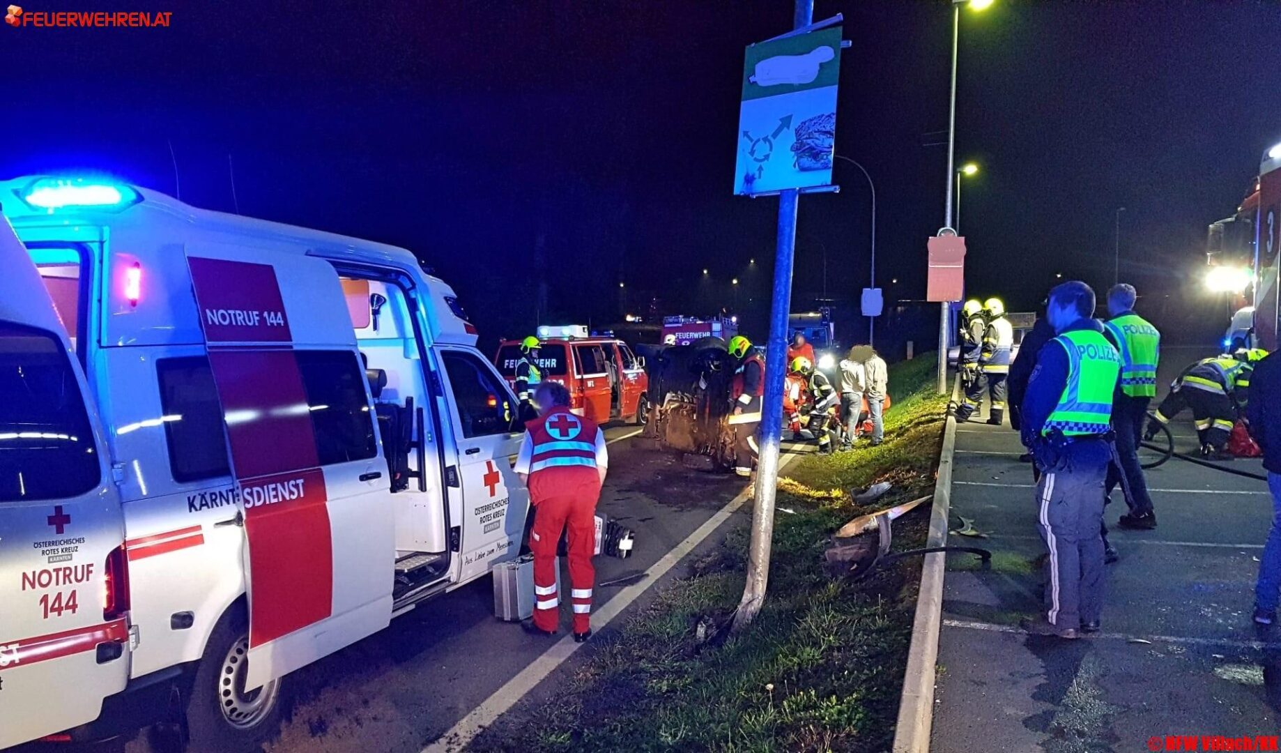 „Beim Eintreffen unserer Kräfte konnte festgestellt werden, dass aus noch unbekannter Ursache ein PKW von der Fahrbahn abgekommen war, einen Laternenmast touchierte und sich daraufhin überschlagen hatte und seitlich zu liegen kam“, berichtet HBI Harald Geissler, Kommandant der Hauptfeuerwache Villach.