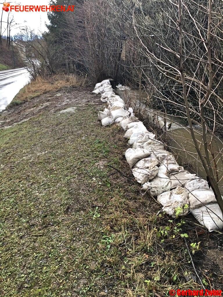 Am Vormittag zu Heiligabend mussten die Feuerwehren Willendorf am Steinfeld und Dörfles zu einem Hochwassereinsatz ausrücken. Bei der Rothengrub-Bushaltestelle trat der Frauenbach über die Ufer und überschwemmte die B26.