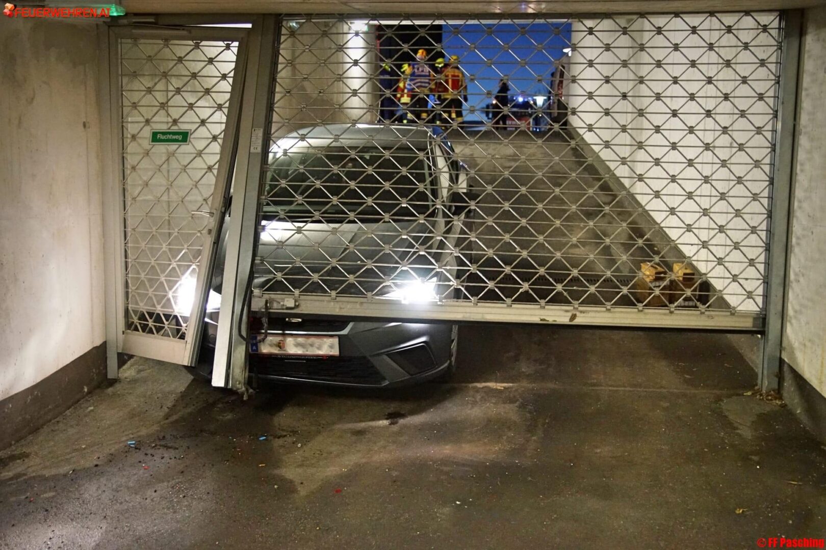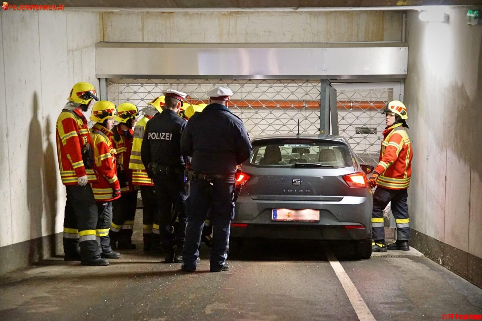 Zu einem Verkehrsunfall mit eingeklemmter Person wurden die Freiwilligen Feuerwehren Pasching und Breitbrunn am Montag, den 14. Jänner um 17:12 Uhr in das Ortszentrum von Pasching alarmiert. Aus bisher unbekannter Ursache kam ein PKW in einer Tiefgarageneinfahrt ins Rollen, eine Person wurde dabei zwischen Fahrzeug und Garagentor eingeklemmt und schwer verletzt.