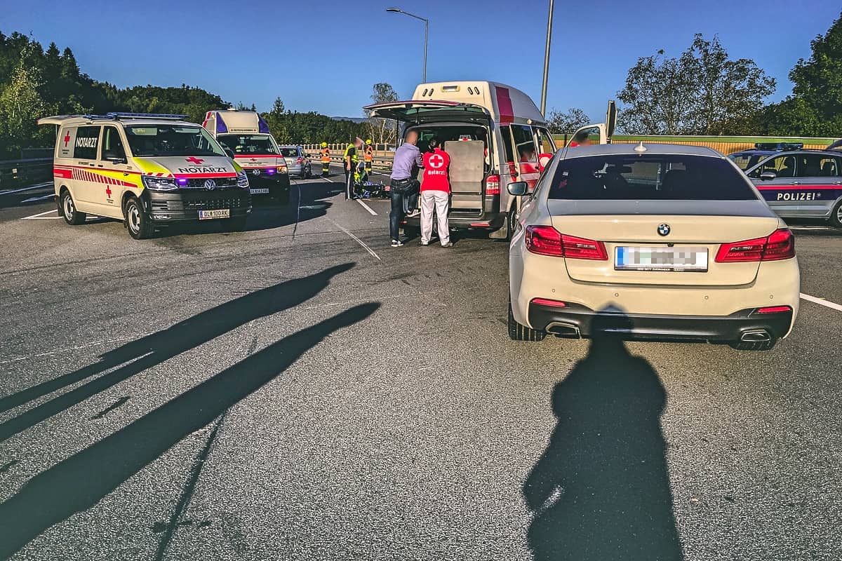 Beim Eintreffen am Unfallort konnte folgende Lage festgestellt werden: Ein Mopedfahrer war aus bisher unbekannter Ursache mit einem PKW im Kreuzungsbereich zusammengestoßen und wurde dabei schwer verletzt. Das anwesende Rote Kreuz und ein zufällig am Einsatzort befindlicher Arzt führten die Erstversorgung durch. Die Polizei hatte die Unfallstelle bereits großräumig abgesichert und die B76 für den gesamten Verkehr gesperrt. Die Aufgabe der Feuerwehr bestand darin, den Brandschutz aufzubauen, die Unfallstelle im Unfallbereich abzusichern, die Polizei bei den Verkehrsregelungsmaßnahmen zu unterstützen und ausgeflossene Betriebsmittel zu binden. Kurze Zeit später wurde auch der Rettungshubschrauber C12 aus Graz von den anwesenden Notärzten angefordert. Nach dem Abtransport des Verletzten, wurde die Unfallstelle von den Wrackteilen gereinigt und die Polizei wurde bei der Unfalldokumentation unterstützt. Das defekte Fahrzeug wurde vom ÖAMTC abtransportiert. Nach knapp eineinhalb Stunden konnte die B76 wieder für den Verkehr freigegeben werden, lange Staus während des Unfalles waren die Folge.