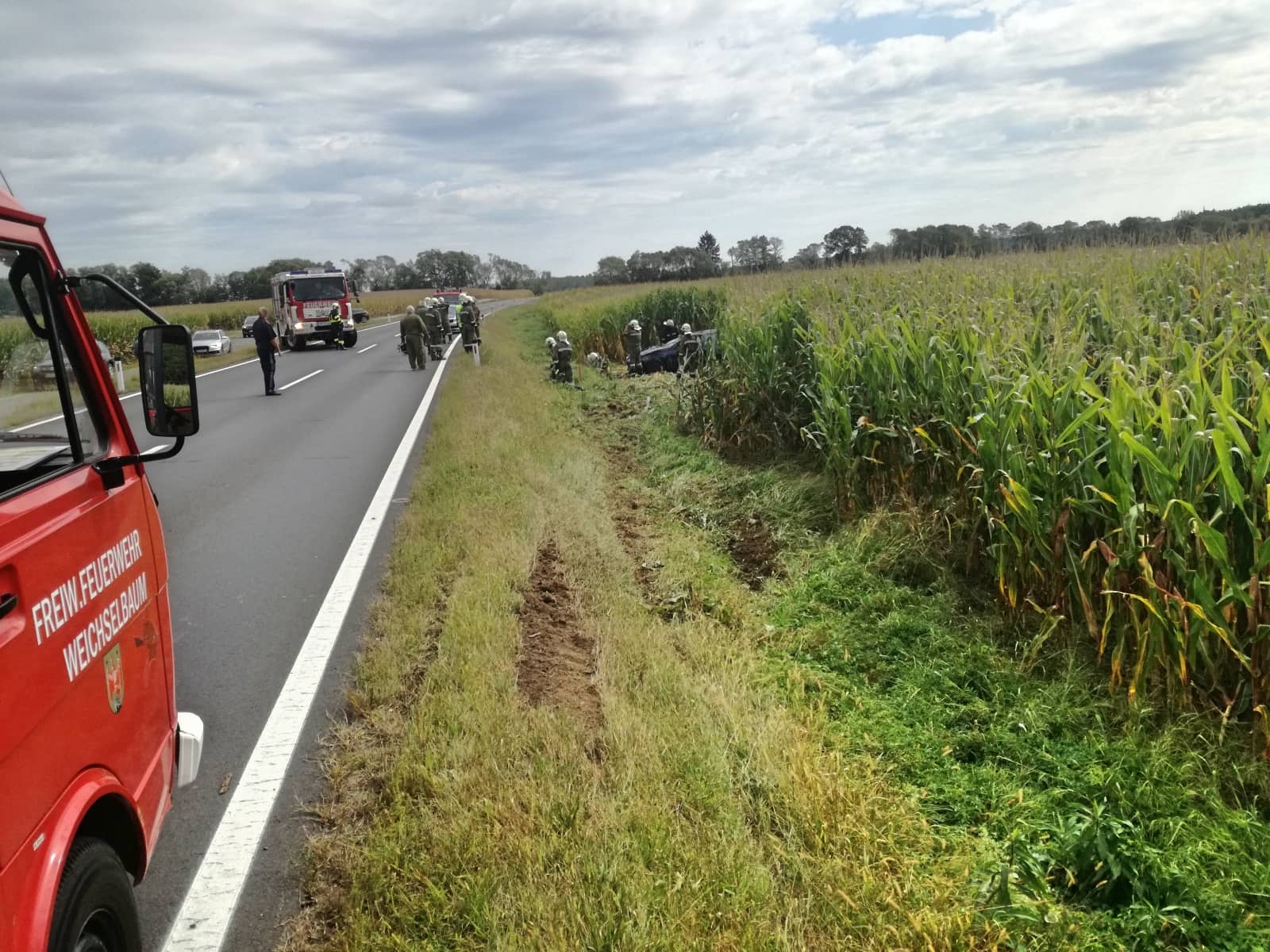 Aus ungeklärter Ursache kam ein 56-jähriger Jennersdorfer am Samstag den 14.09. gegen 10.30 Uhr mit seinem Fahrzeug auf der L 116 bei Weichselbaum (Bezirk Jennersdorf) von der Straße ab, überschlug sich mehrmals und blieb auf dem Dach in einem Maisfeld liegen. Der Lenker wurde dabei unbestimmten Grades verletzt und vom Roten Kreuz ins Krankenhaus gebracht. Die Feuerwehr führte die Fahrzeugbergung durch.