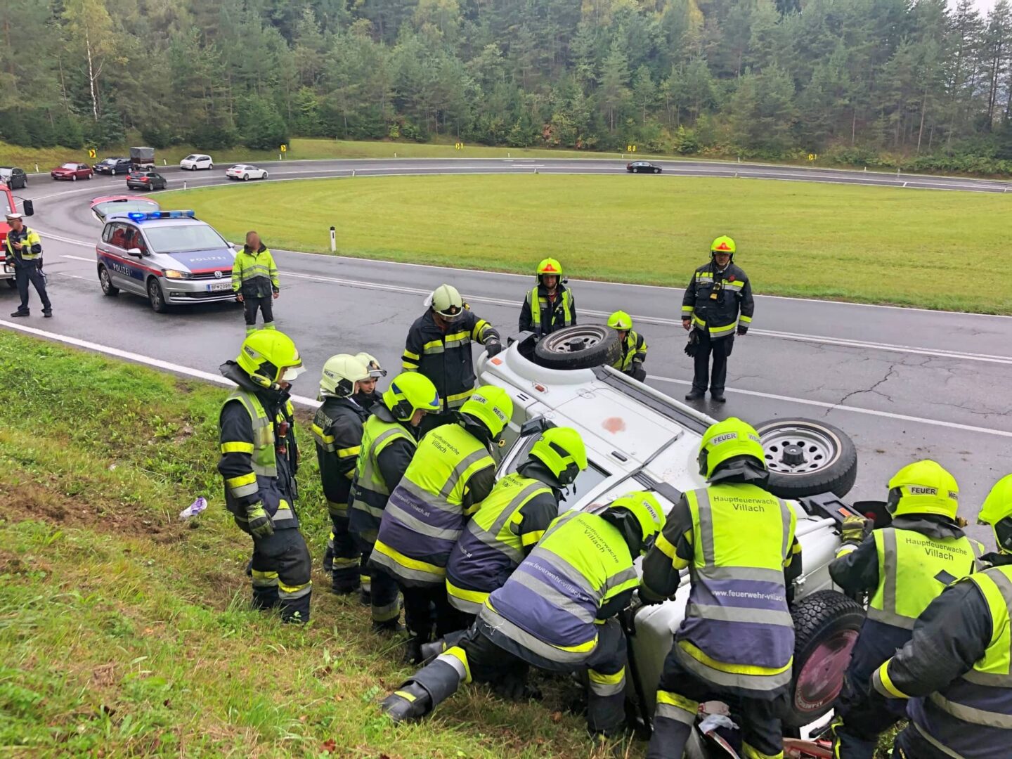 „Beim Eintreffen unseres technischen Zuges konnte festgestellt werden, dass sich aus noch unbekannter Ursache ein PKW überschlagen hat, am Dach zu liegen kam und die Verletzte noch im Fahrzeug fest gesessen sei“, berichtet Einsatzleiter HBI Harald Geissler, Kommandant der Hauptfeuerwache Villach. Durch die Feuerwehr wurde die Person geborgen und dem Roten Kreuz zur weiteren Behandlung mit Verletzungen unbestimmten Grades übergeben.
