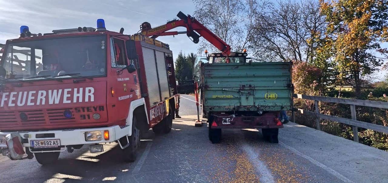 Die Feuerwehr Rudersdorf – Ort wurde am 23.Oktober kurz vor 14:30 zu einem technischen Einsatz gerufen. Hatte es lt. Alarmierung durch die LSZ Burgenland vorab noch geheissen, ein Traktoranhänger sei auf der Umgehungsstrasse der Baustelle Brücke Lahnbach umgekippt, stellte sich vor Ort heraus, dass es sich „nur“ um einen technischen Defekt des Anhängers handelte.