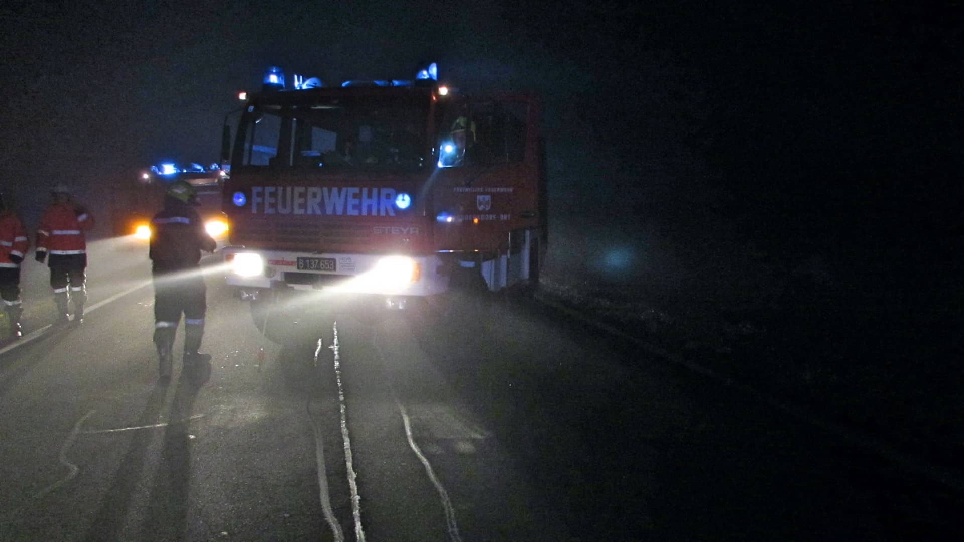 Das Fahrzeug wurde von der Feuerwehr Rudersdorf-Ort mittels Seilwinde geborgen und auf einem gesicherten Platz abgestellt. Anwesend waren die Feuerwehr Rudersdorf-Ort mit 13 Mann, die Feuerwehr Dobersdorf mit 6 Mann und die Polizei Königsdorf. Am Fahrzeug entstand Totalschaden. Der Einsatz war um 01:38 beendet.