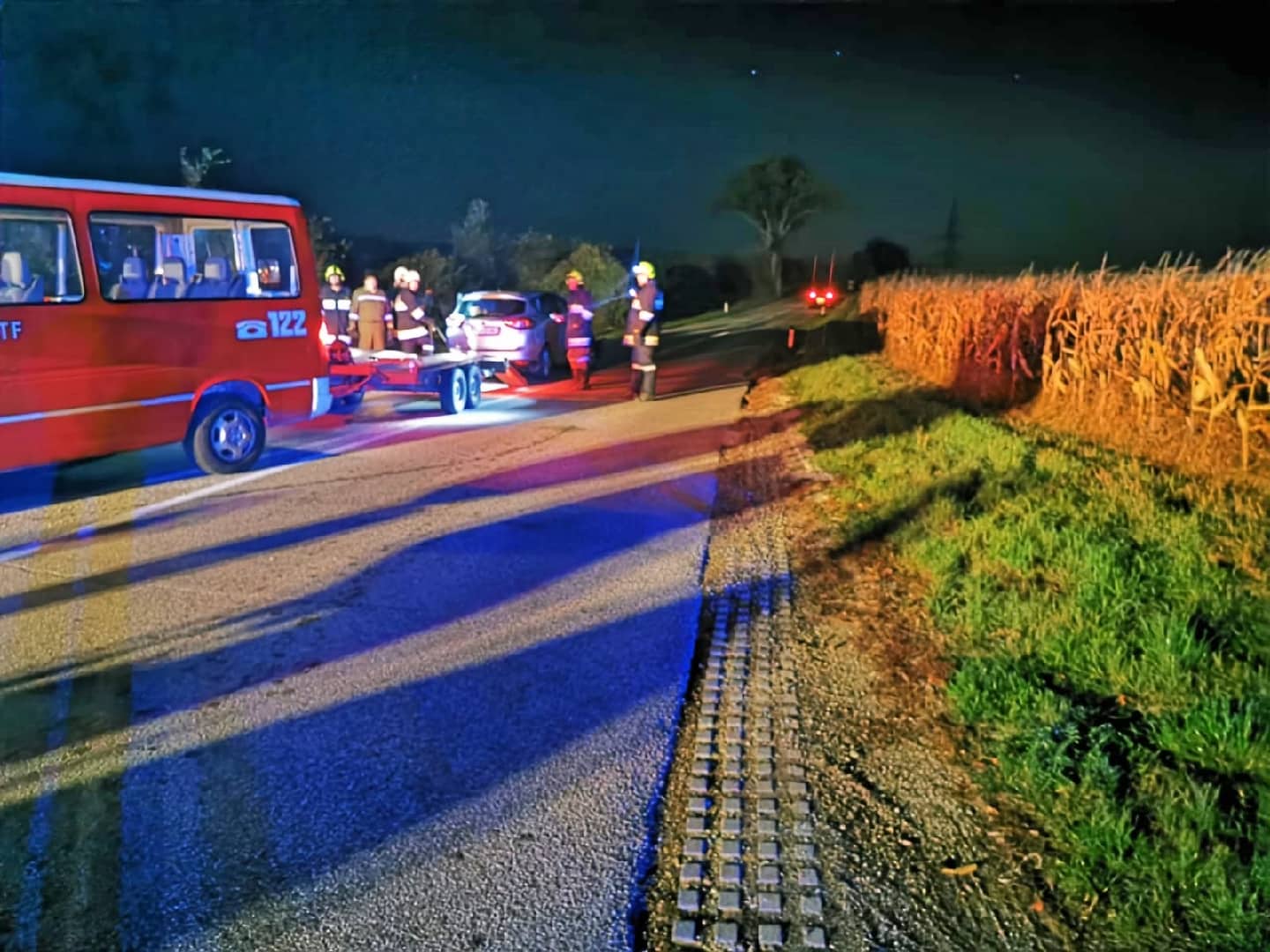 Die Freiwillige Feuerwehr Statzendorf wurde am Donnerstag, den 17. Oktober kurz vor Mitternacht zu einer Fahrzeugbergung Richtung Kuffern gerufen. Auf der Kreuzung zur L110 stießen zwei Fahrzeuge aus unbekannter Ursache zusammen. Ein PKW landete dabei im Acker.
