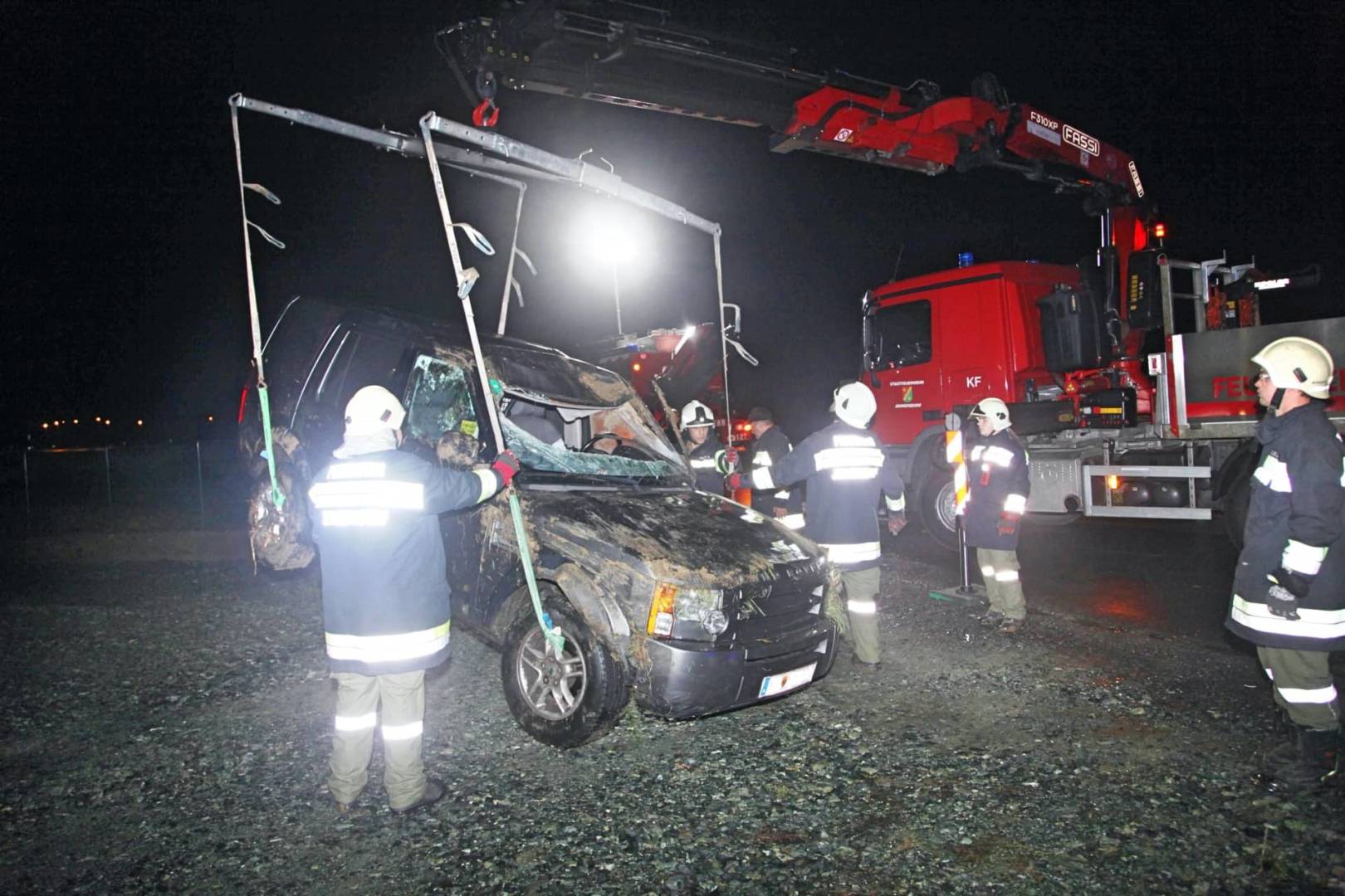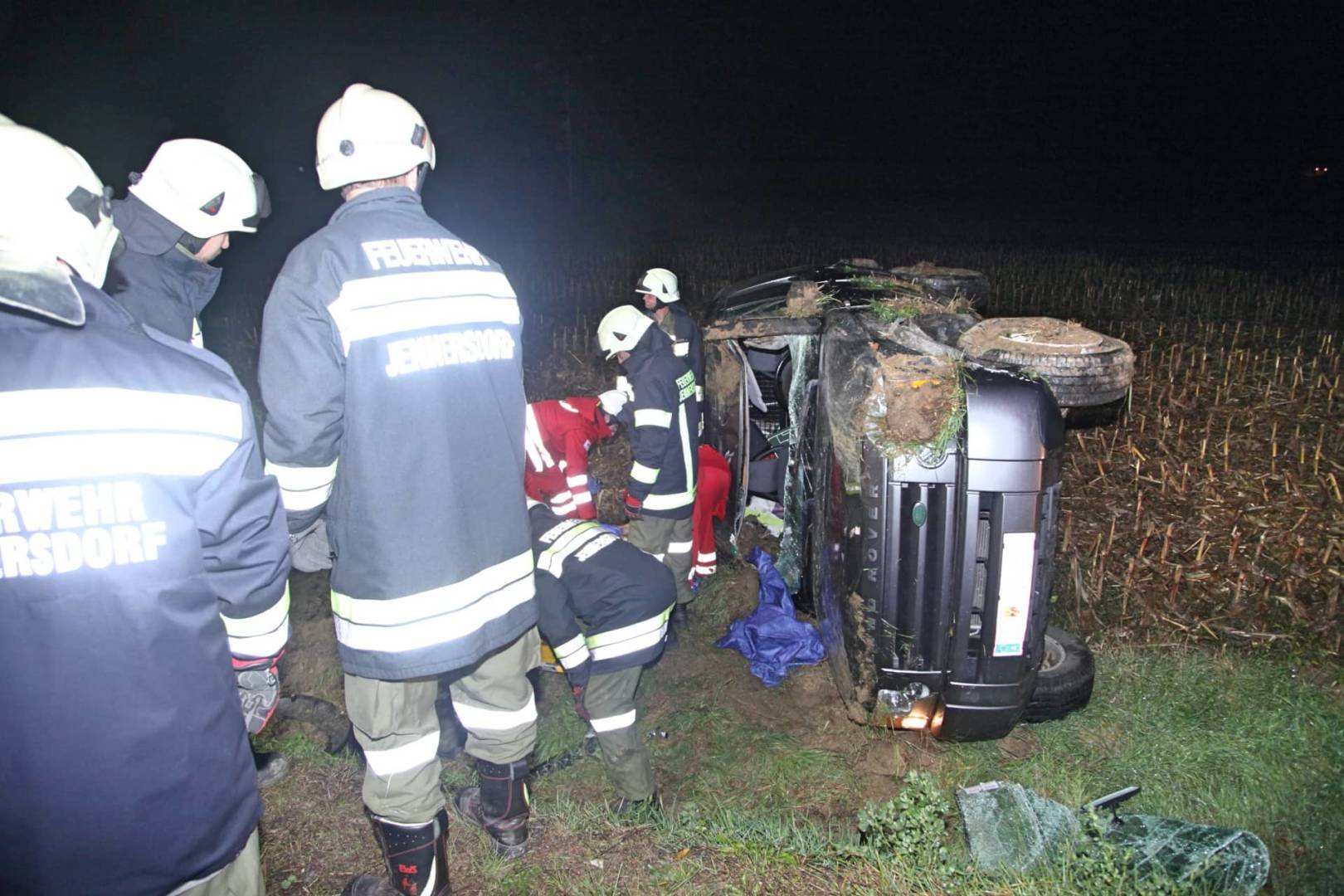 In der Nacht von Donnerstag auf Freitag kam gegen 02.30 Uhr in der Nacht ein PKW-Lenker aus Jennersdorf mit seinem Geländefahrzeug auf der LKW-Umfahrungsroute in Jennersdorf von der regennassen Fahrbahn ab. Das Fahrzeug schlitterte auf Höhe einer Spenglerei-Firma über die steile Böschung auf ein etwa zwei Meter liegendes, bereits abgeerntetes Maisfeld und kam nach einem Überschlag auf der Fahrerseite zu liegen. Ein zufällig hinzukommender Autofahrer leiste dem Verletzten erste Hilfe und alarmierte die Einsatzkräfte.