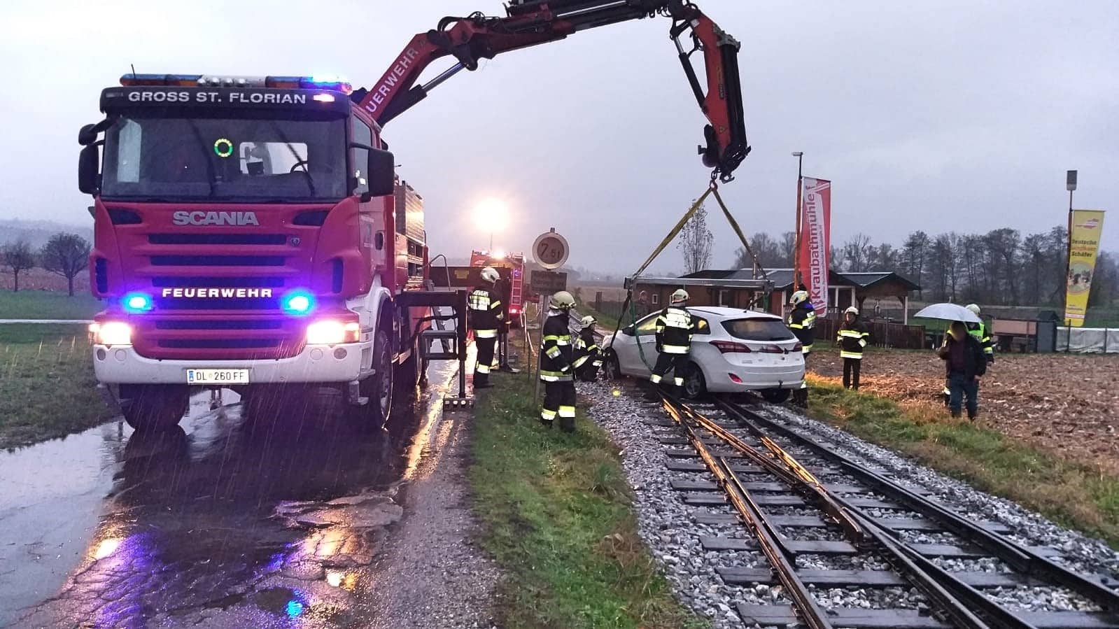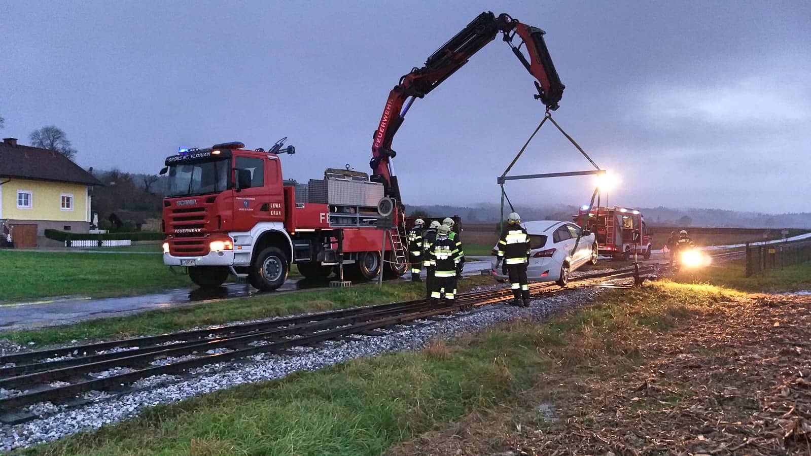 Früh morgendlichen Einsatz gab es auch für die Feuerwehr Kraubath am Mittwoch den 13.11.2019. Zu einer Fahrzeugbergung bei der Eisenbahnkreuzung des Stainzer Flascherlzuges wurden die Kameraden alarmiert. Mit TLF-A und MTF-A am Einsatzort angekommen wurde durch den Einsatzleiter OBI Daniel Resch festgestellt, dass ein Fahrzeug aus unbekannter Ursache von der Straße abkam und auf den Gleisen des Flaschenzuges hängen blieb. Um keine weiteren Schäden zu riskieren, wurde die FF Groß St. Florian mit dem LKW-Kran nachalarmiert und das Fahrzeug unbeschadet aus der misslichen Lage befreiet. Nach ca. zwei Stunden konnten die Einsatzkräfte wieder ins Rüsthaus einrücken.