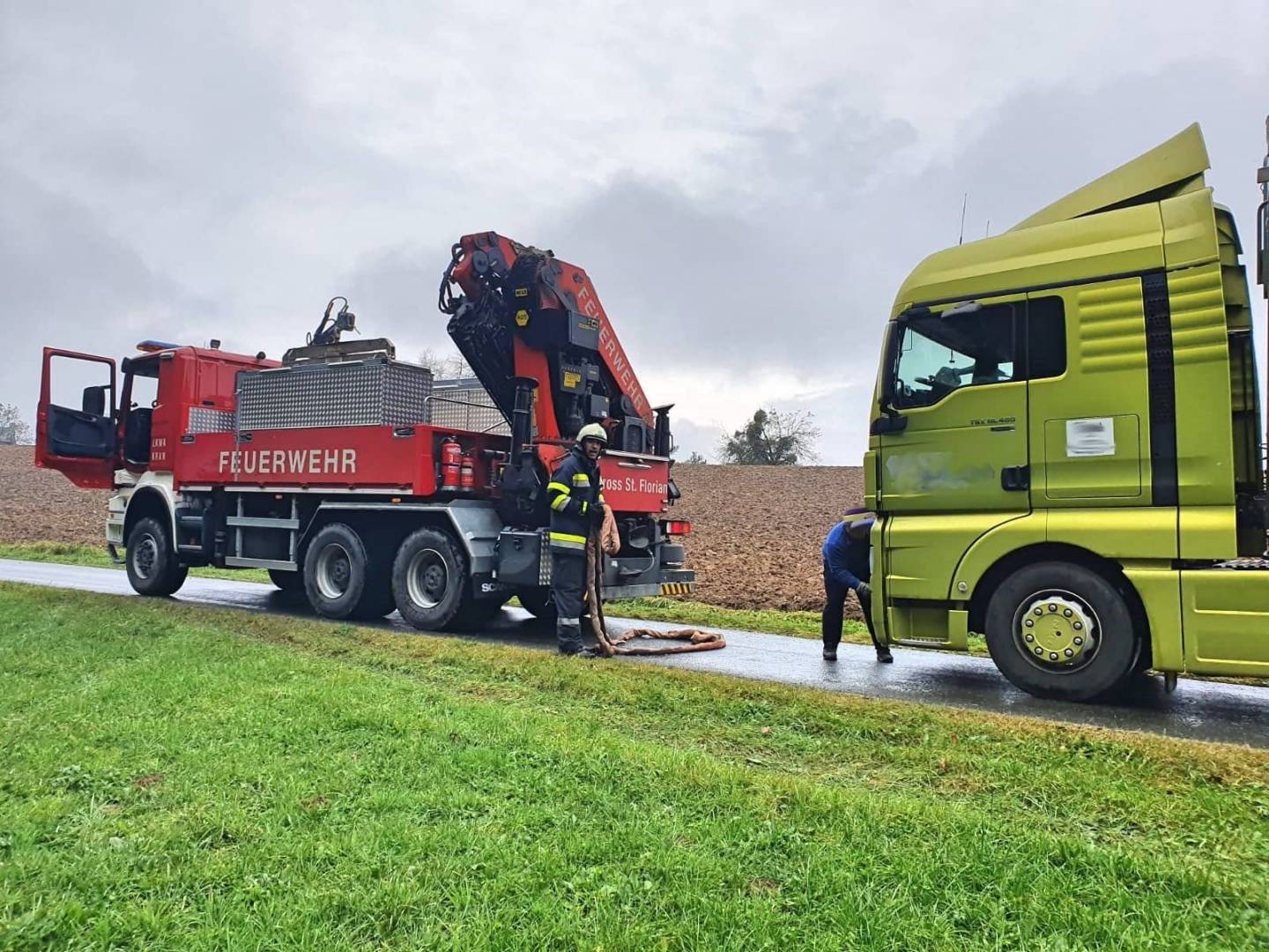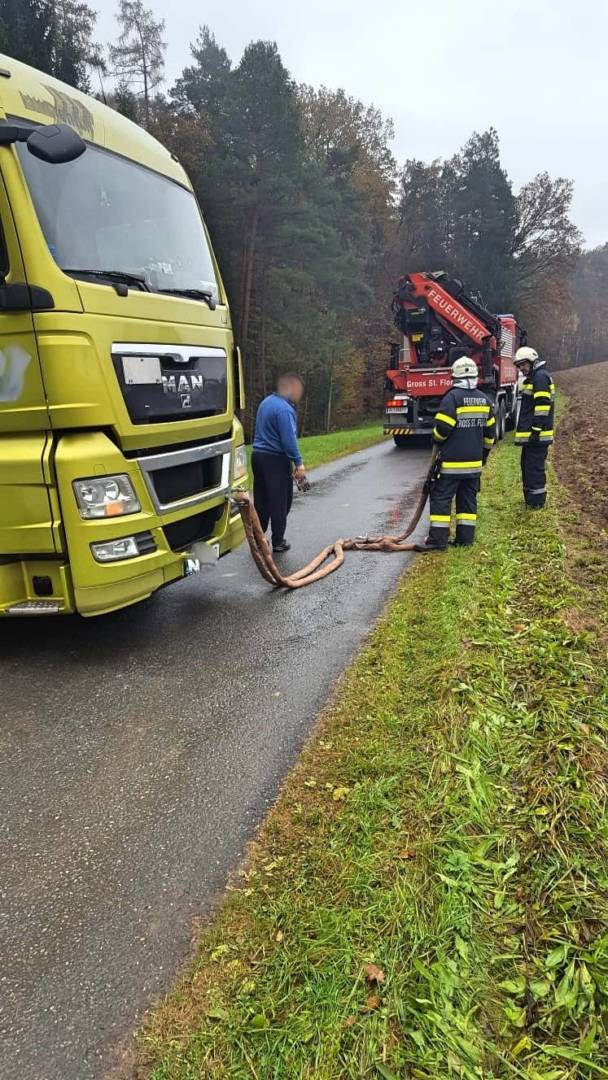 Am Dienstag den 12. November 2019 wurden die Kameraden der Feuerwehr Groß St. Florian zu einer LKW-Bergung um 09:04 Uhr alarmiert. Ein ausländischer Sattelzuglenker blieb nach einem Umkehrversuch in einer Wiese hängen. Am Einsatzort angekommen wurde der Sattelzug mit dem LKW-Kran aus der Wiese gezogen. Anschließend konnten die ausgerückten Kameraden wieder ins Rüsthaus einkehren.