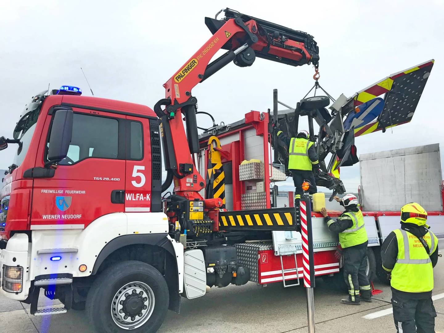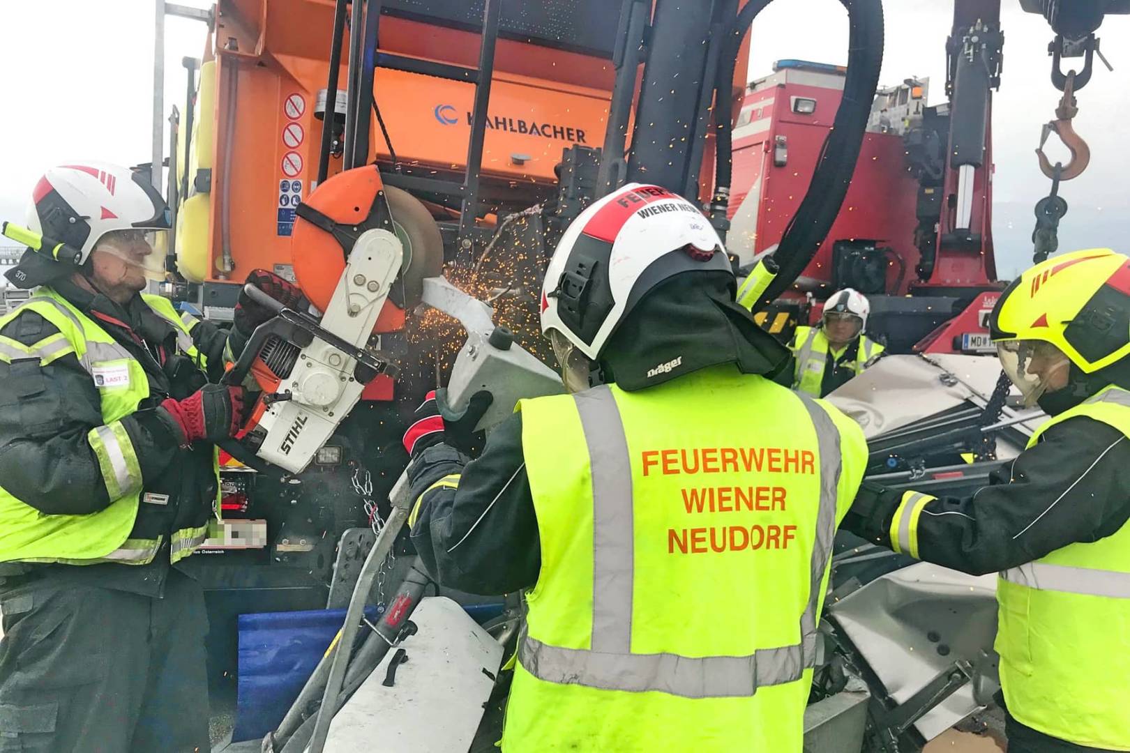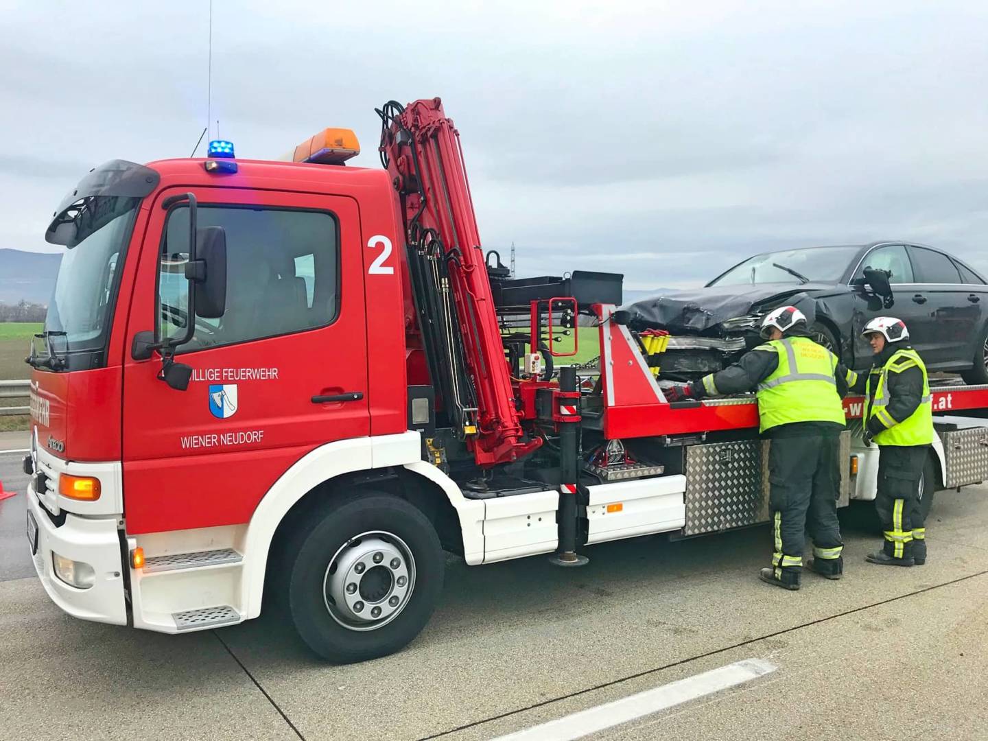 Nach der abgeschlossenen Unfallaufnahme der Autobahnpolizei konnten die Wiener Neudorfer Feuerwehrmänner mit den Bergungsarbeiten beginnen.