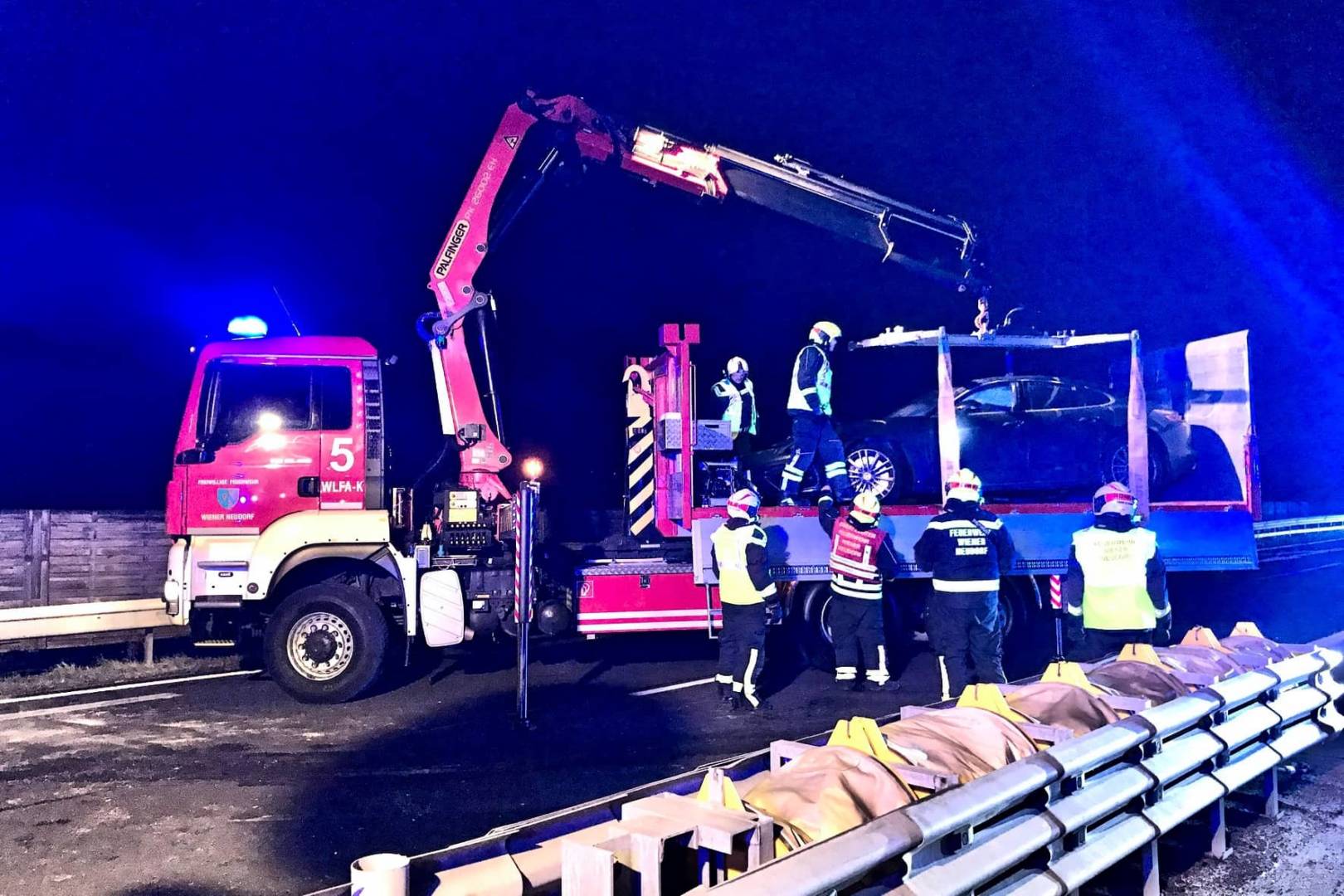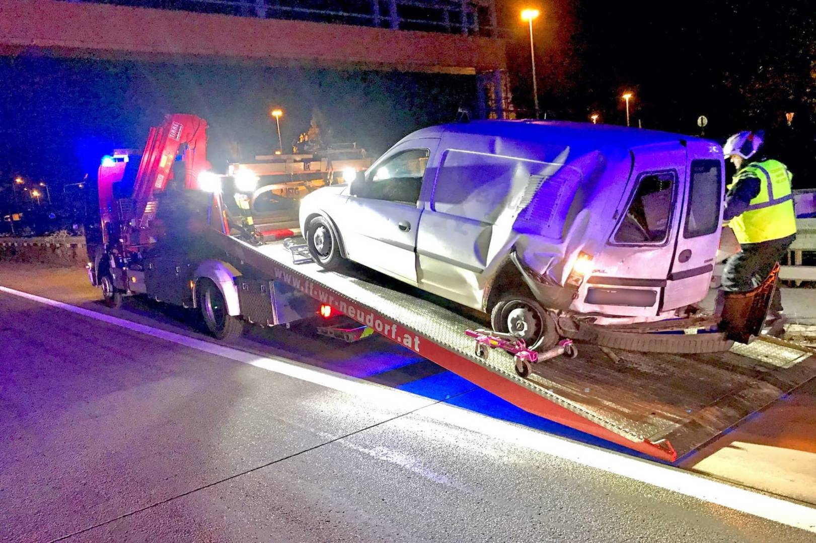 Nach einer Kollision zwischen einem Porsche Panamera und einem Kleintransporter in Fahrtrichtung Graz, mussten die beiden Unfallfahrzeuge von den Wiener Neudorfer Einsatzkräften geborgen werden. Die Bergungen der Unfallautos erfolgte mittels Abschleppfahrzeug und dem Wechselladerfahrzeug.