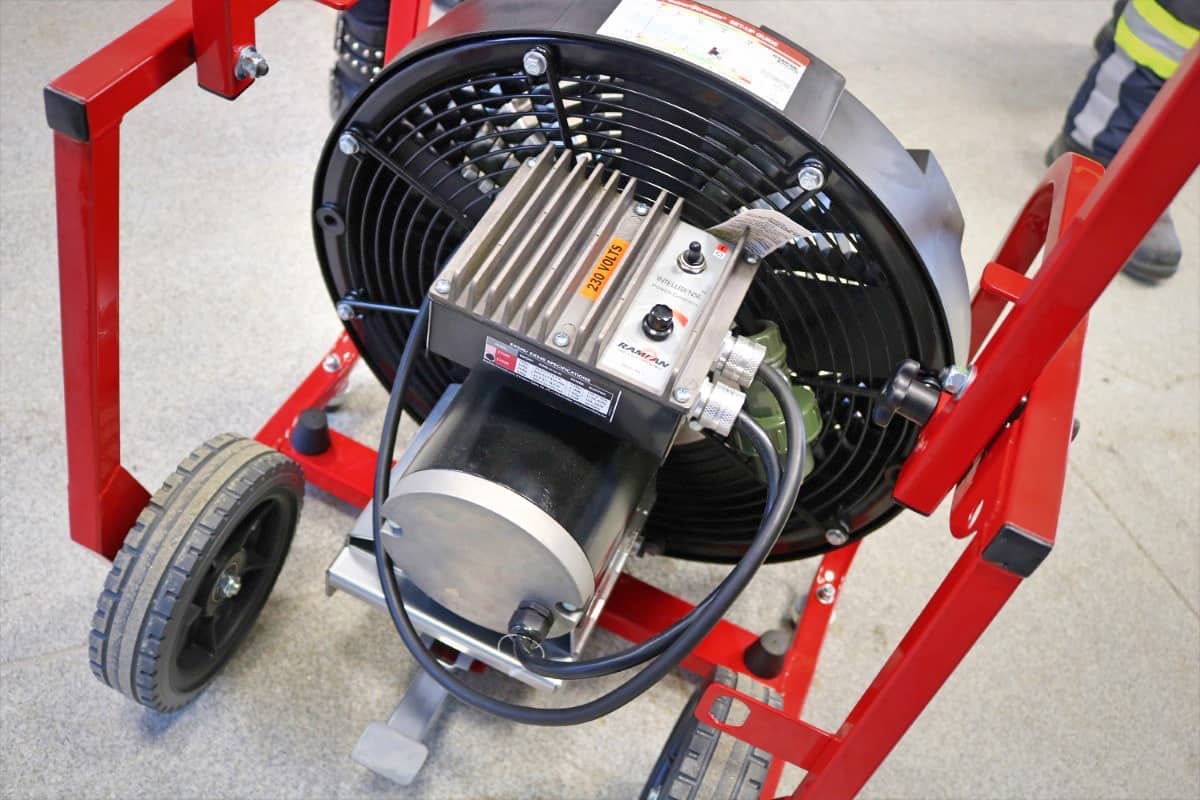 Mit einer Luftleistung von 23.000 m3 pro Stunde und dem emissionsfreien Antrieb ist der Hochleistungslüfter bestens für den Einsatz im Innenraum von großen Gebäuden oder auch Tiefgaragen geeignet und somit ein perfekter Ersatz für den bereits in die Jahre gekommenen benzinbetriebenen Lüfter.