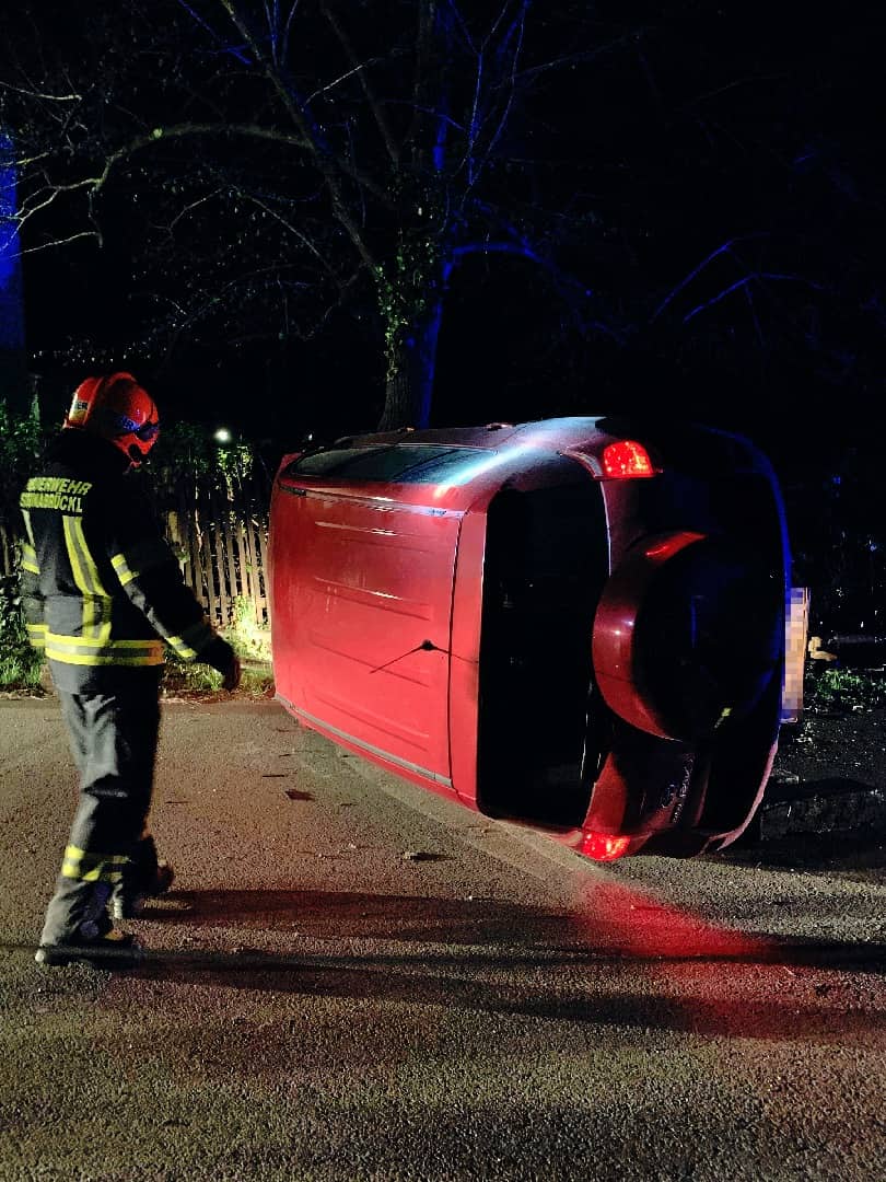 Aus bislang unbekannter Ursache touchierte ein Pkw den Zaun des Friedhofes, kippte anschließend um und blieb seitlich auf der Straße liegen. Zum Glück wurde der Lenker des Pkw dabei nicht verletzt. Nach Freigabe durch die Polizei wurde der Pkw mittels Seilwinde aufgestellt und anschließend auf die Abschleppachse verladen und Abtransportiert. Auch erfolgte eine Reinigung der Fahrbahn.