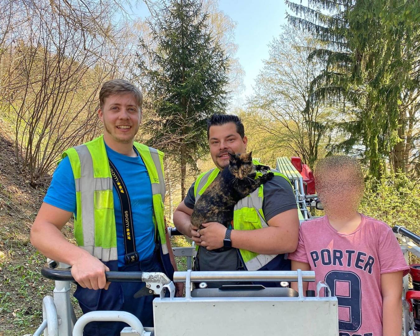 Eine Katzenrettung forderte ebenfalls zeitgleich den Einsatz unserer Drehleiter. Zwei Mann rückten in den Stadtteil Wollanig aus um eine sehr ängstliche Hauskatze von einem rund 15 Meter hohen Baum zu retten. Glücklicherweise gelang die Rettung problemlos und die Katze namens „ELLA“ konnte den glücklichen Besitzern übergeben werden.