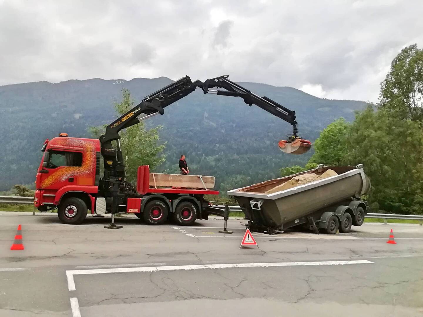 Die Einsatzstelle wurde durch die Feuerwehr sofort gemeinsam mit der Polizei abgesichert. Weiters musste ausgelaufenes Hydrauliköl gebunden werden. Die Ladung wurde durch ein privates Unternehmen auf einen Ersatz-LKW umgeladen.