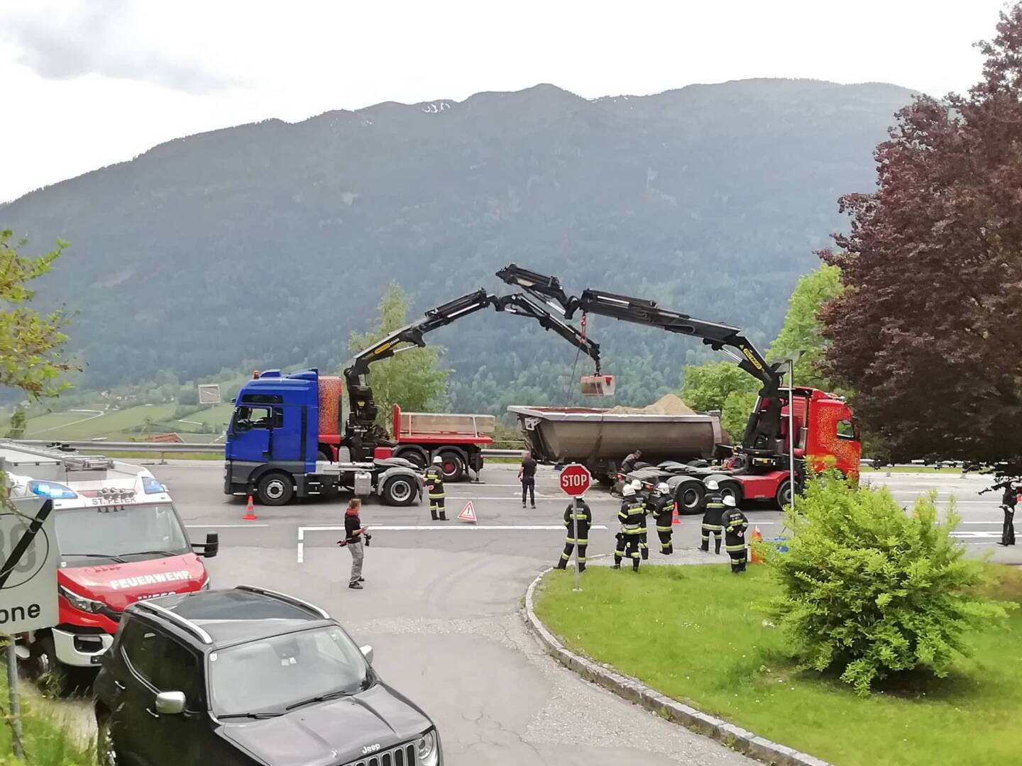 Im Einsatz stand die FF St. Peter ob Radenthein mit LFA, zwei Fahrzeuge der Polizei, zwei LKW eines privaten Unternehmen sowie die Straßenverwaltung.