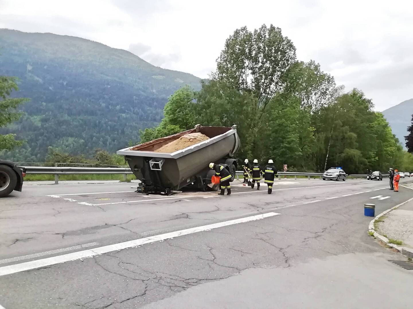 Am Dienstag, den 19.05.2020 wurde die FF St. Peter ob Radenthein gegen 11 Uhr zu einem technischen Einsatz auf die B88 alarmiert. Ein LKW verlor aufgrund unbekannter Ursache seinen mit Schotter vollbeladenen Auflieger.
