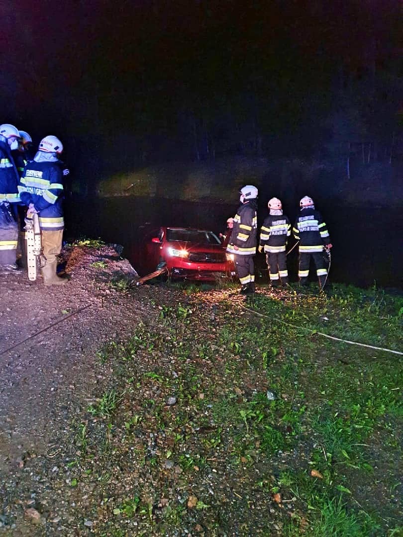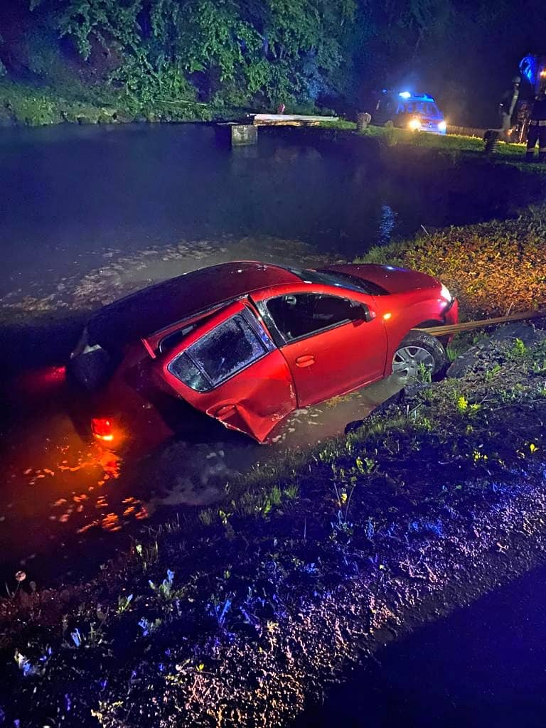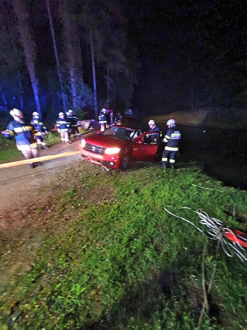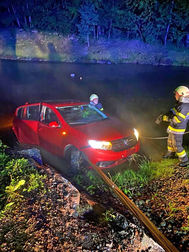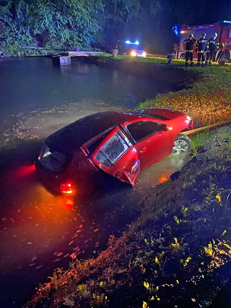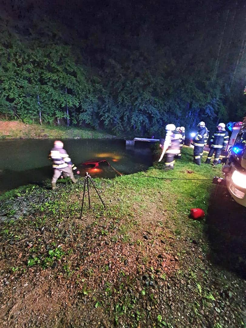 Am Einsatzort angekommen wurde nach der Erkundung durch den Einsatzleiter diese Vorahnung bestätigt. Ein Fahrzeug ist aus noch ungeklärter Ursache auf der regennassen Fahrbahn von der Straße abgekommen und in einem angrenzenden Teich zum Stillstand gekommen. Der Fahrzeuglenker konnte sich selbst aus dem sinkenden Kleinwagen befreien, bevor dieser vollkommen unter der Wasseroberfläche verschwand.