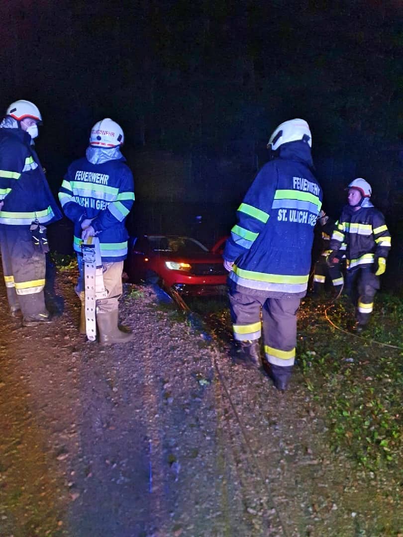 Am 02.05.2020 wurde die freiwillige Feuerwehr St. Ulrich im Greith um 22:55 Uhr zu einer sehr skurrilen Fahrzeugbergung alarmiert. Aus dem Einsatzbefehl „PKW im Teich“ konnten die Kameraden bereits erahnen, dass dies ein herausfordernder Einsatz werden könnte.