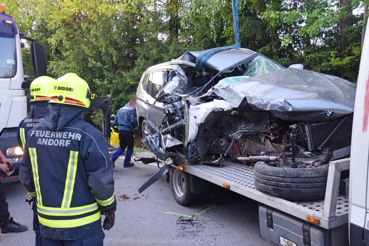Die Einsatzkräfte der Feuerwehren Andorf und Pimpfing wurden zu diesem Verkehrsunfall mit der Meldung „Eingeklemmte Person“ alarmiert. Tatsächlich konnte der verletzte PKW-Lenker aber bereits durch das Rote Kreuz aus dem schwer deformierten PKW gerettet werden. Die Einsatzkräfte der Feuerwehren sicherten die Einsatzstelle ab und sorgten für eine großräumige Umleitung des Vekehrs auf der vielbefahrenen Bundesstraße. Für die Bergung der Unfallfahrzeuge wurden private Bergeunternehmen angefordert, die dabei auch von den Feuerwehren unterstützt wurden.