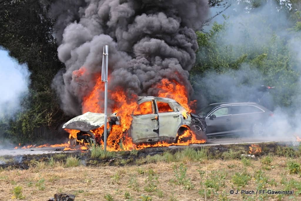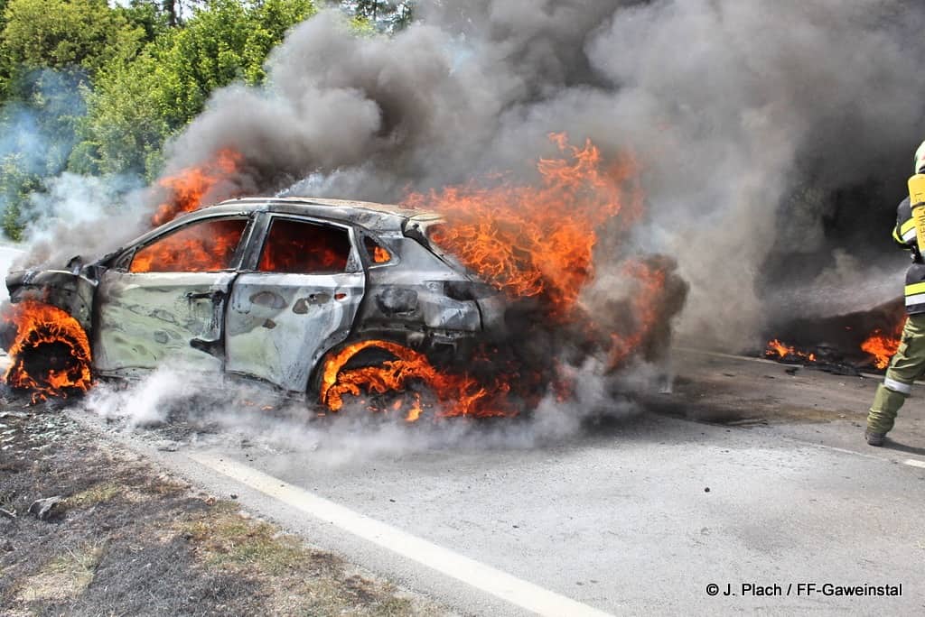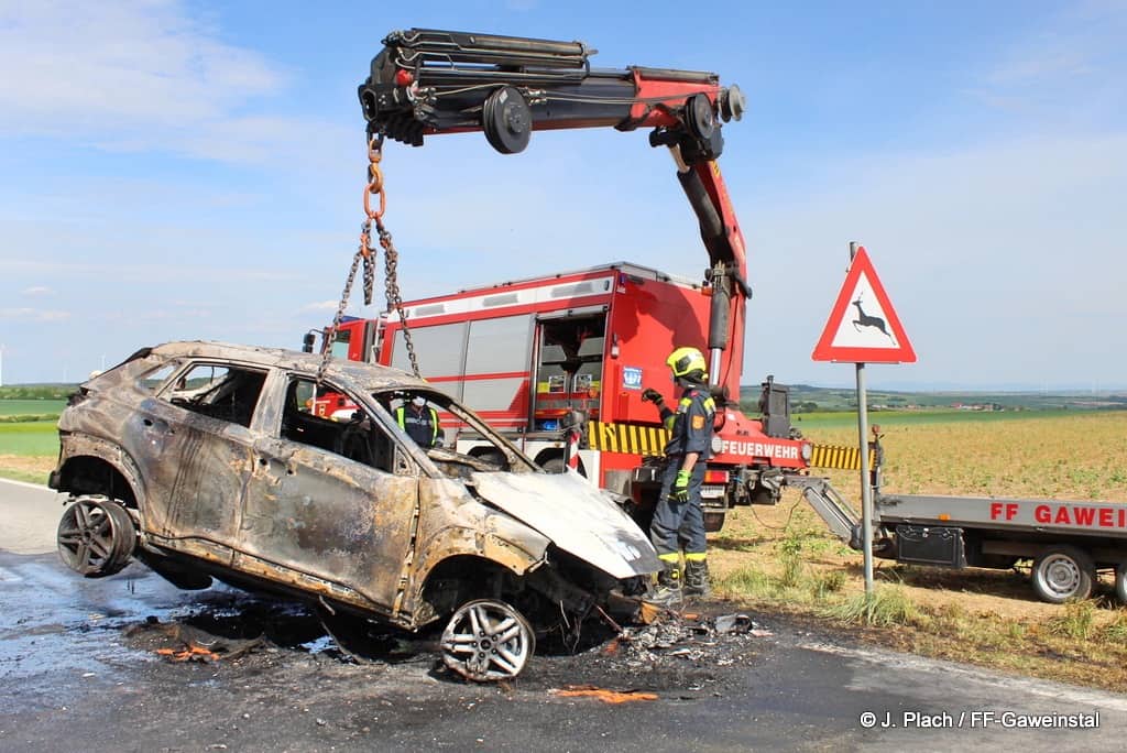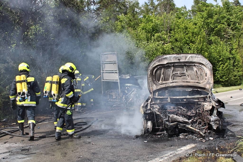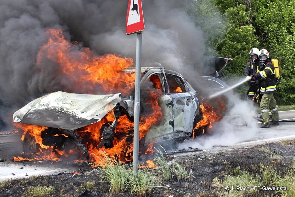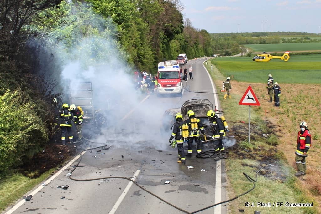 Am Samstag, den 9.5.2020 wurden die Feuerwehren Gaweinstal, Atzelsdorf, Höbersbrunn, Pellendorf und Ladendorf mittels Sirene zu einem Fahrzeugbrand auf die Verbindungsstraße Neubau – Paasdorf (L10 / L6) alarmiert.