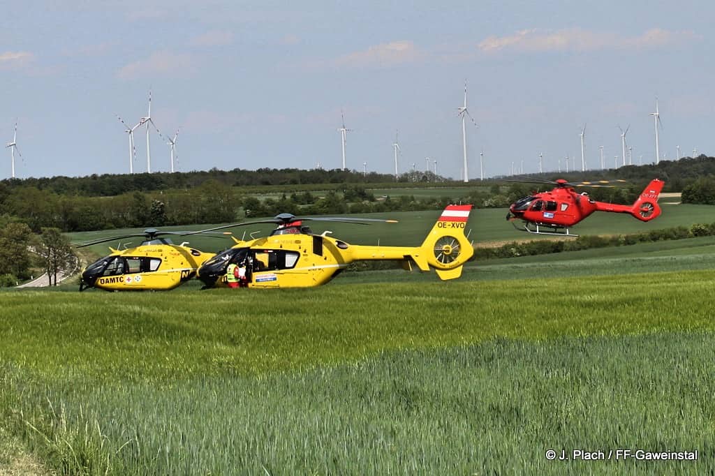 Um die drei Schwerverletzten so rasch wie möglich abtransportieren zu können, wurden von Notruf 144 drei Notarzthubschrauber (Christophorus 9 aus Wien, Christophorus 3 aus Wiener Neustadt und Martin 5 von Heli Austria – Baden) alarmiert.