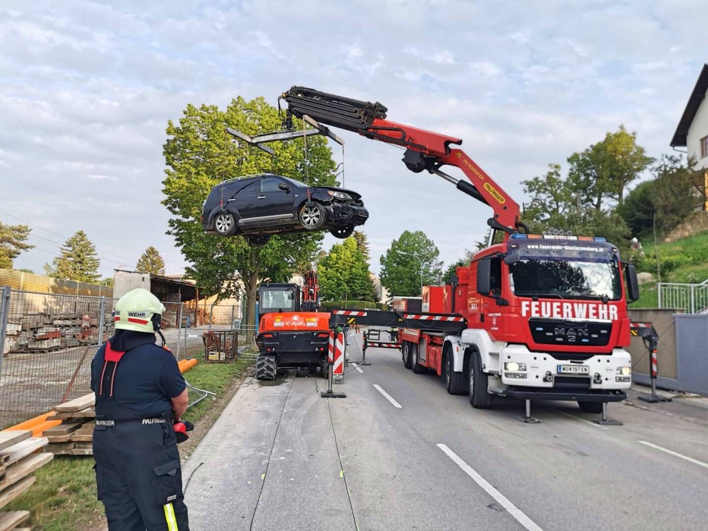 Gestern gegen 18:15 Uhr wurde die Feuerwehr Klosterneuburg mit dem Wechselladerfahrzeug zur Unterstützung der Feuerwehr Kritzendorf alarmiert. Nach einem Verkehrshindernis musste mittels Ladekran ein Pkw aus einer Baugrube geborgen werden.