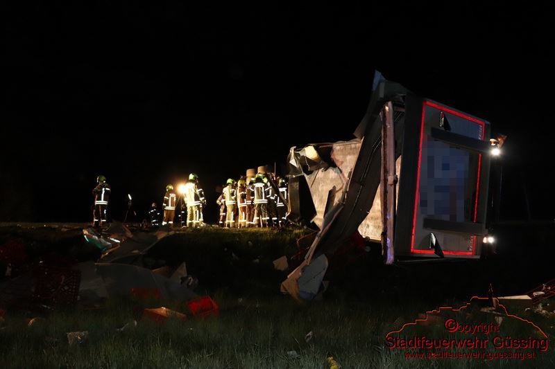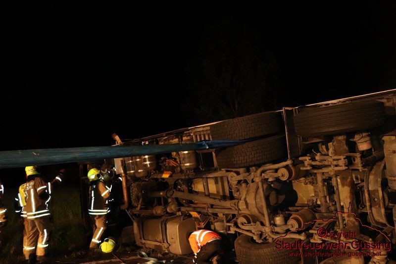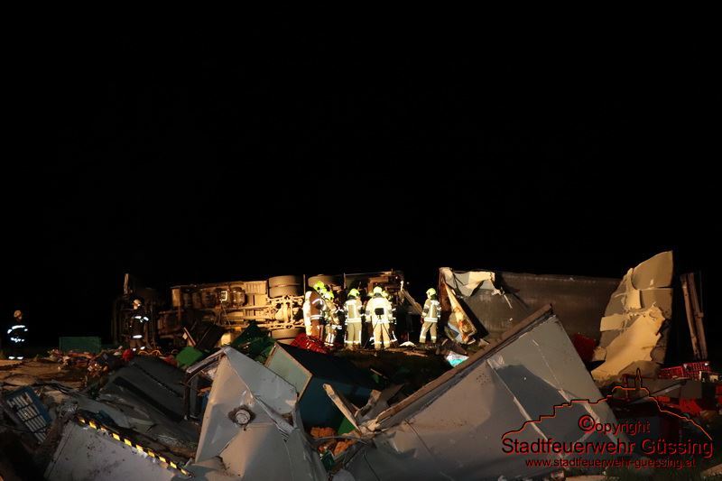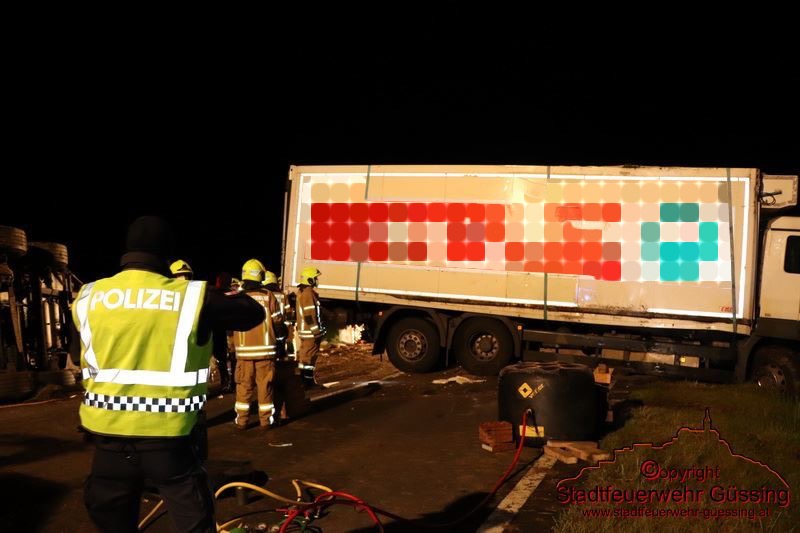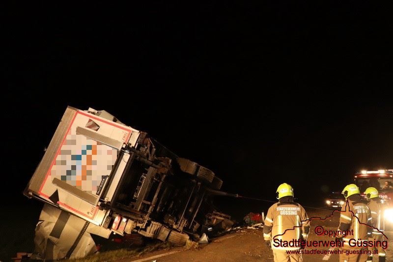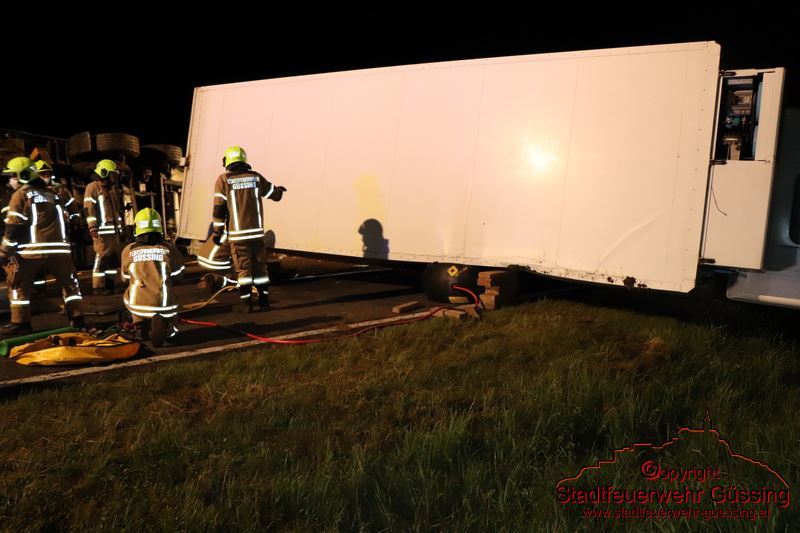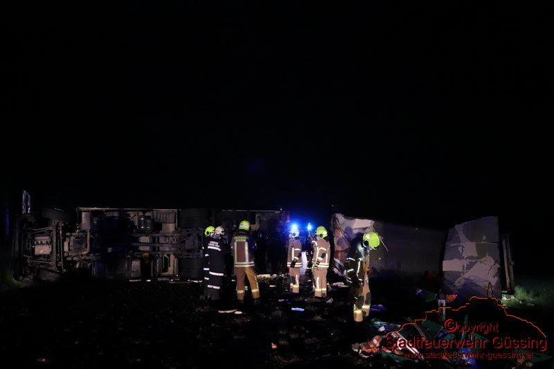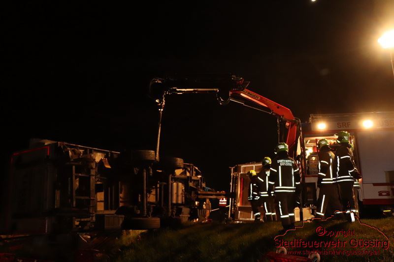 Am Dienstag, dem 05.05.2020, wurden wir um 23:01 Uhr zu einer LKW-Bergung auf die B57 Höhe Deutsch Tschantschendorf gerufen. Aus unbekannter Ursache verlor ein LKW Fahrer die Herrschaft über sein Fahrzeug. Der LKW Zug stürzte um und kam quer über die gesamte Bundesstraße zum Liegen.