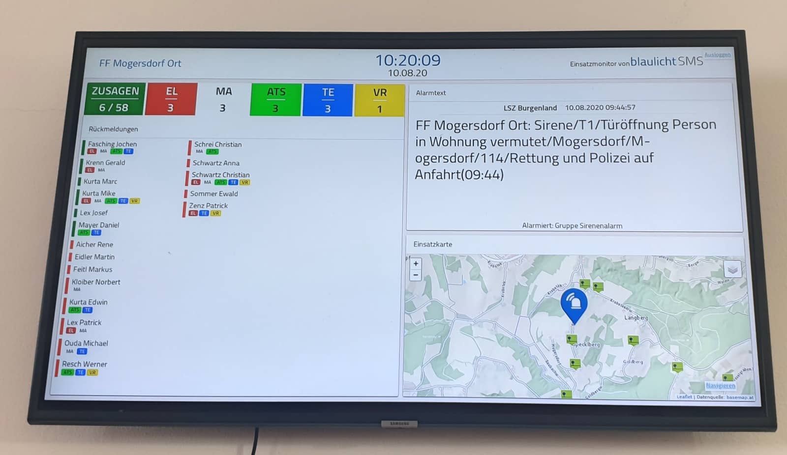Am 10.08.2020 wurden die Feuerwehren Mogersdorf-Ort und FF Mogersdorf Berg um 9:44 Uhr von der Landessicherheitszentrale Burgenland mittels Sirene zu einer Türöffnung mit vermuteter verletzter Person in der Wohnung alarmiert.