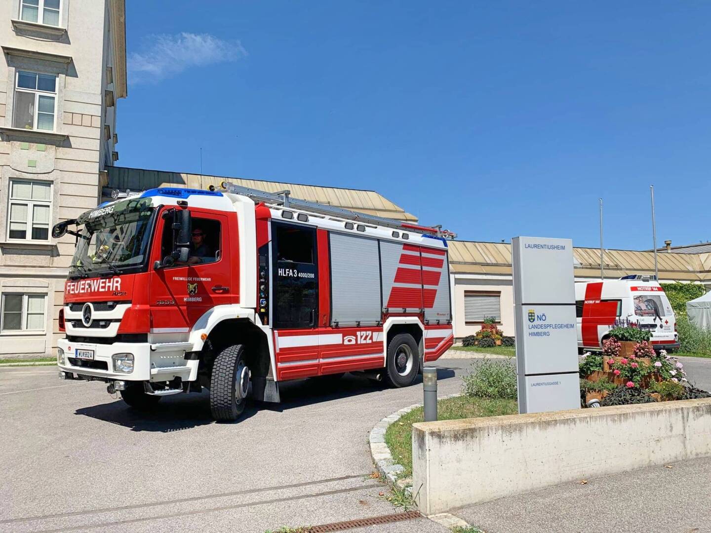 Kurz nach Mittag um 12:10 Uhr folgte die nächste Alarmierung, ein Alarm der automatischen Brandmeldeanlage im Landespflegeheim. Gemäß Alarmplan wurden neben der Feuerwehr Himberg auch die Feuerwehr Ebergassing mit dem Höhenrettungsgerät alarmiert. Auch hier konnte der Einsatz rasch beendet werden, nach Erkundung des Atemschutztrupps und Kontrolle mit der Wärmebildkamera dürfte es im Bereich des Dachbodens zu einem Täuschungsalarm gekommen sein.