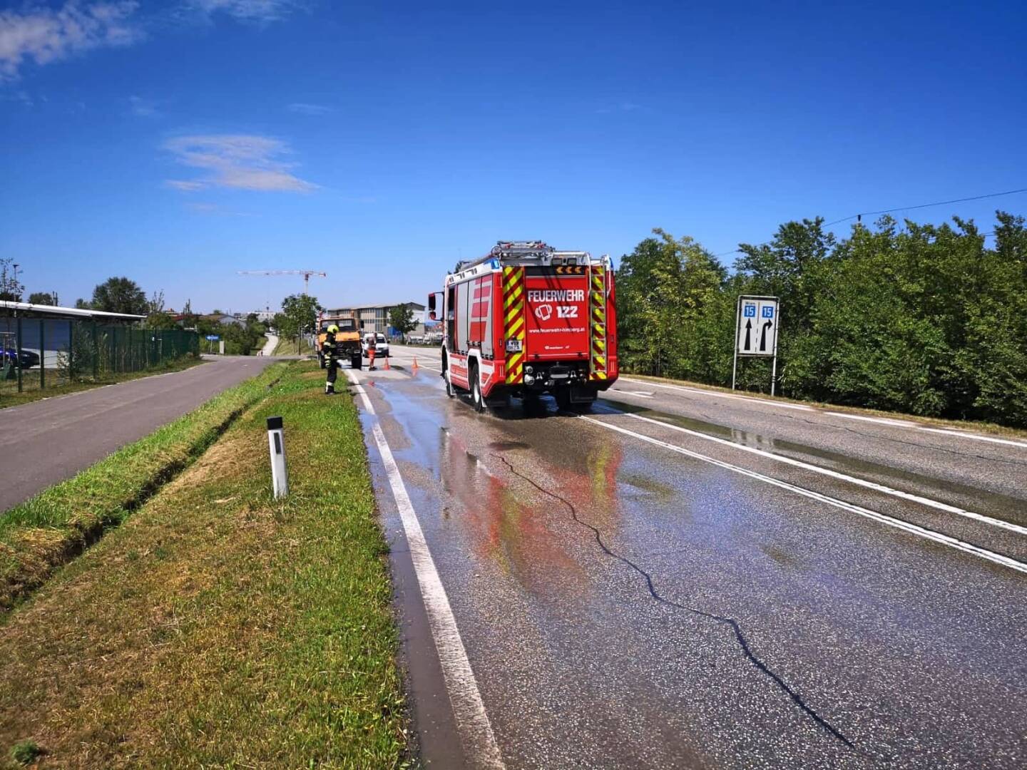 Per Funk folgte die Meldung zu einem weiteren Einsatz, auf der Gutenhoferstraße kurz vor der B15a hat ein LKW dermaßen Ladegut verloren, dass vor allem für Motorradfahrer kein sicheres Vorbeikommen möglich war.