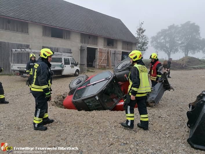 Zu gleich zwei Einsätzen wurde die Feuerwehr Biberbach am Freitagvormittag, 23. Oktober 2020, gerufen. Zuerst galt es einen umgestürzten Teleskoplader, knapp 2 Stunden später dann einen Lieferwagen zu bergen.